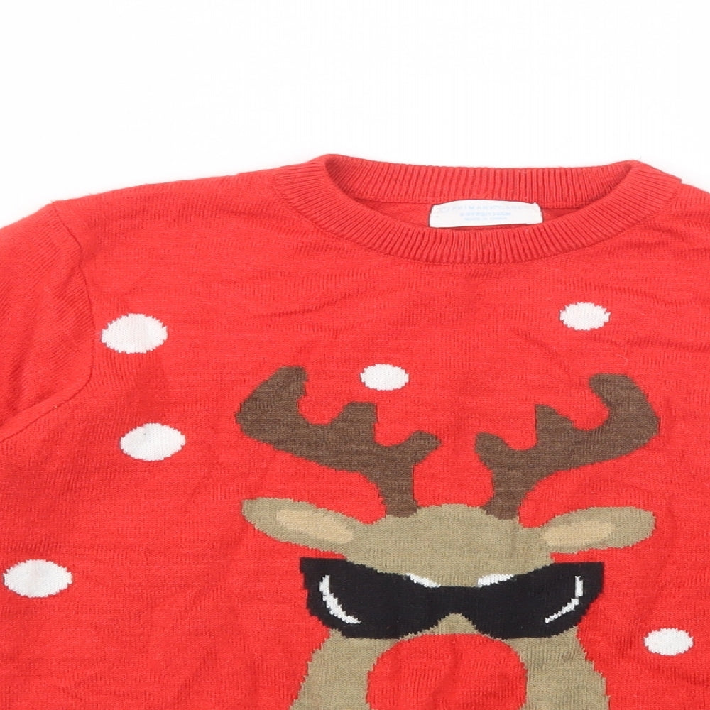 Girls Red Crew Neck Polyester Pullover Jumper Size 8-9 Years Pullover - Christmas Jumper