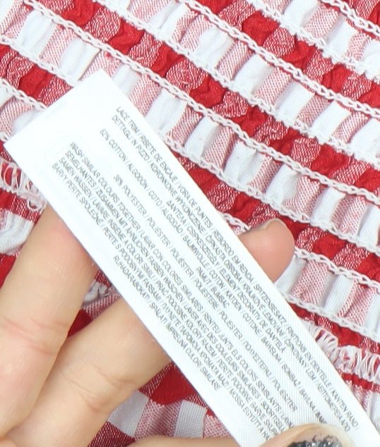This adorable Primark girls' red and white gingham A-line dress is a charming option for warm-weather days. Designed in a classic check pattern, this knee-length piece captures timeless cottagecore style with a playful twist. Crafted from a soft, breathable woven cotton blend fabric (98% Cotton, 2% Polyester), it offers comfort and durability that's ideal for everyday wear or special outings. The gently smocked bodice creates a flattering fit with a stretchy waist for easy movement, while flutter sleeves and delicate lace trims add a sweet, girly finish. Perfect for spring and summer, this lightweight and lined dress is a versatile choice for casual playdates, parties, or family holidays. A simple pullover design ensures effortless dressing, making it a practical addition to any young girl’s wardrobe. The red gingham pattern adds a cheerful, retro-inspired vibe that feels both stylish and nostalgic. Its breathable and easy-care material makes it a great everyday dress that can be machine washed and worn again and again. With ruffle detailing along the hem and a comfortable square neckline, the dress brings an effortlessly soft silhouette that moves beautifully. In excellent pre-owned condition with no stains or damage noted, this summer-ready piece is full of seasonal charm. Ideal for picnic days, seaside strolls, or birthday gatherings, the dress offers that signature Primark comfort and playfulness parents love, while giving little ones a look that’s fresh, fun, and fuss-free. Add sandals or trainers and a sun hat to complete the outfit.