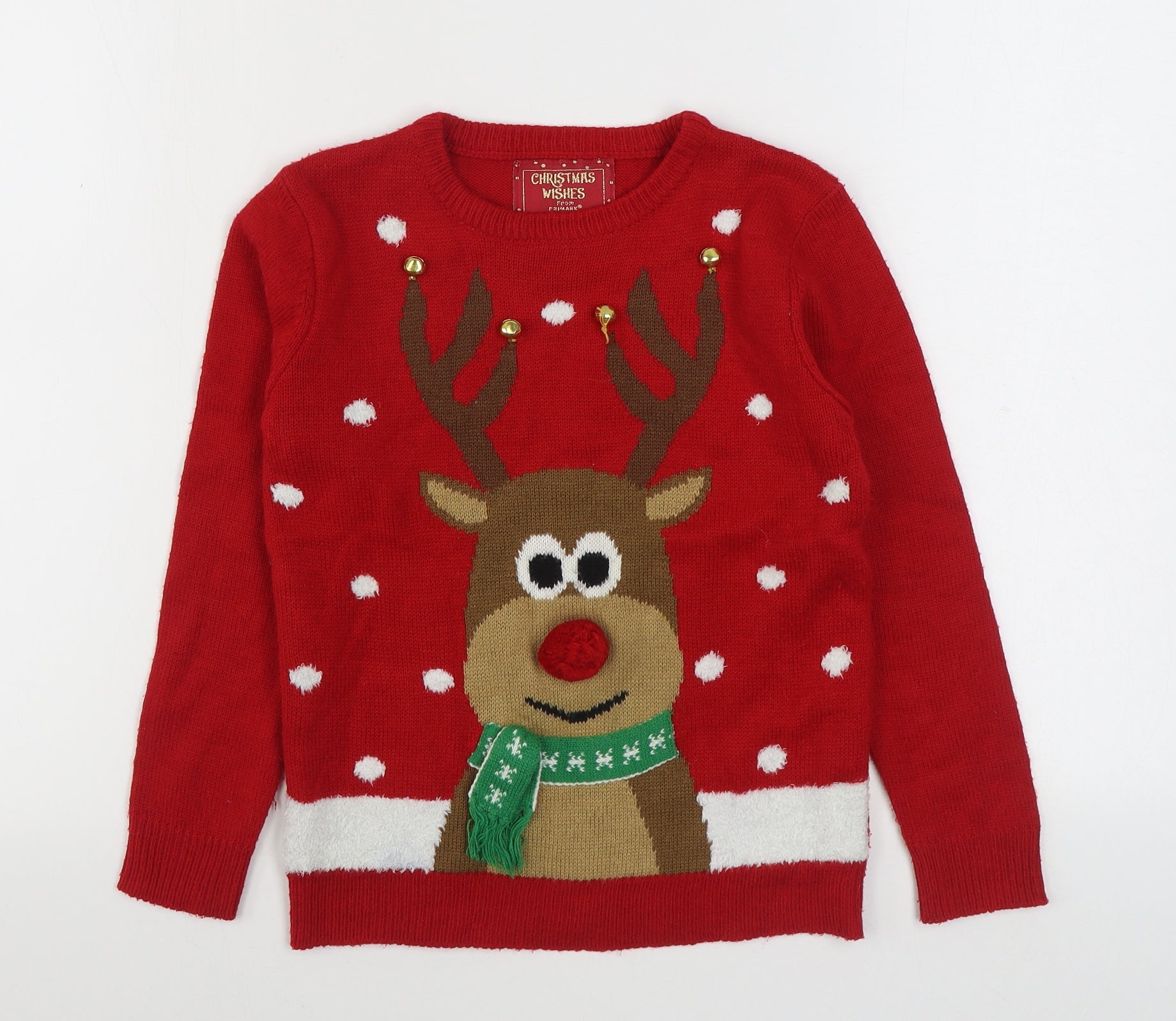 Girls Red Round Neck Acrylic Pullover Jumper Size 8-9 Years Pullover - Christmas Jumper