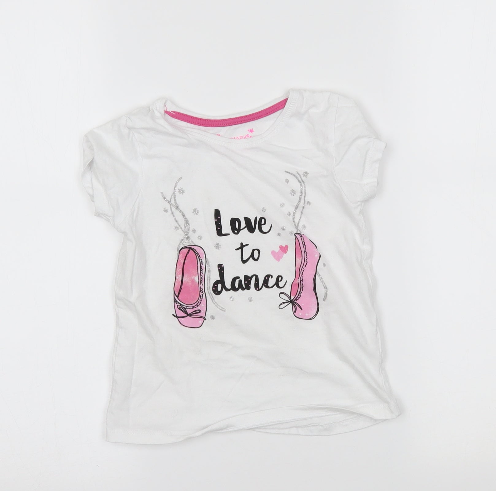 Girls White Basic T-Shirt Size 5-6 Years - love to dance