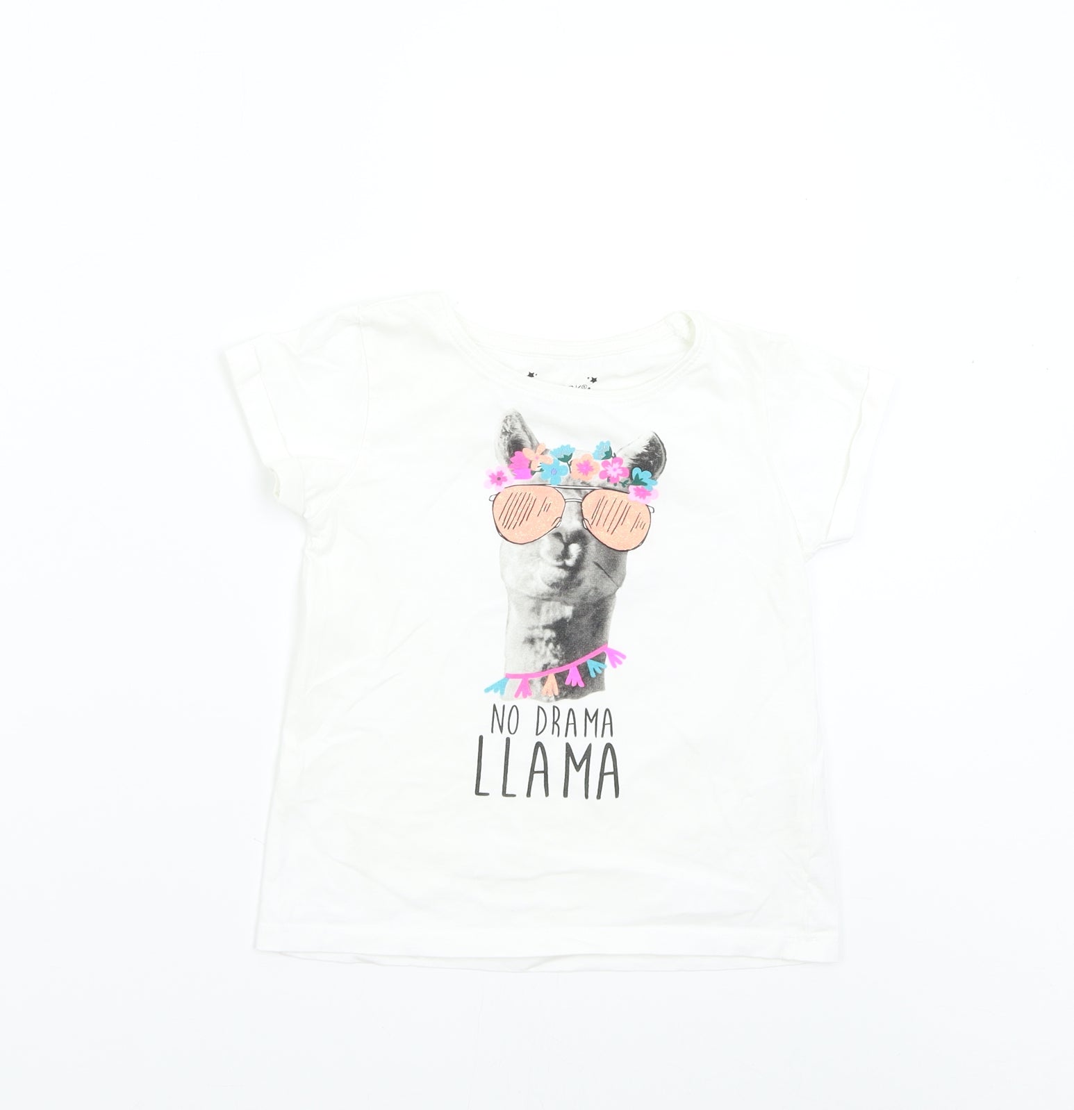 Girls White Basic T-Shirt Size 8-9 Years - No Drama Llama