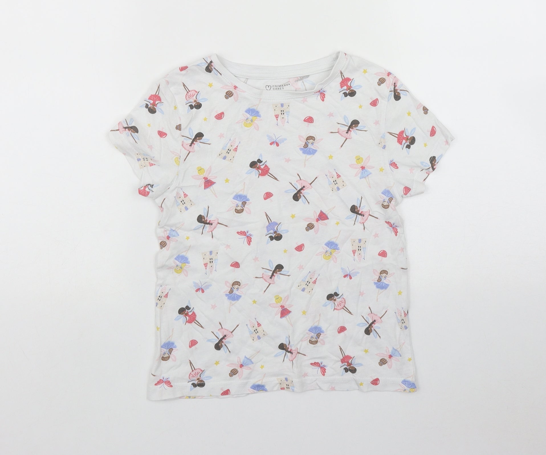 Girls White Geometric Polyester Basic T-Shirt Size 6-7 Years Round Neck