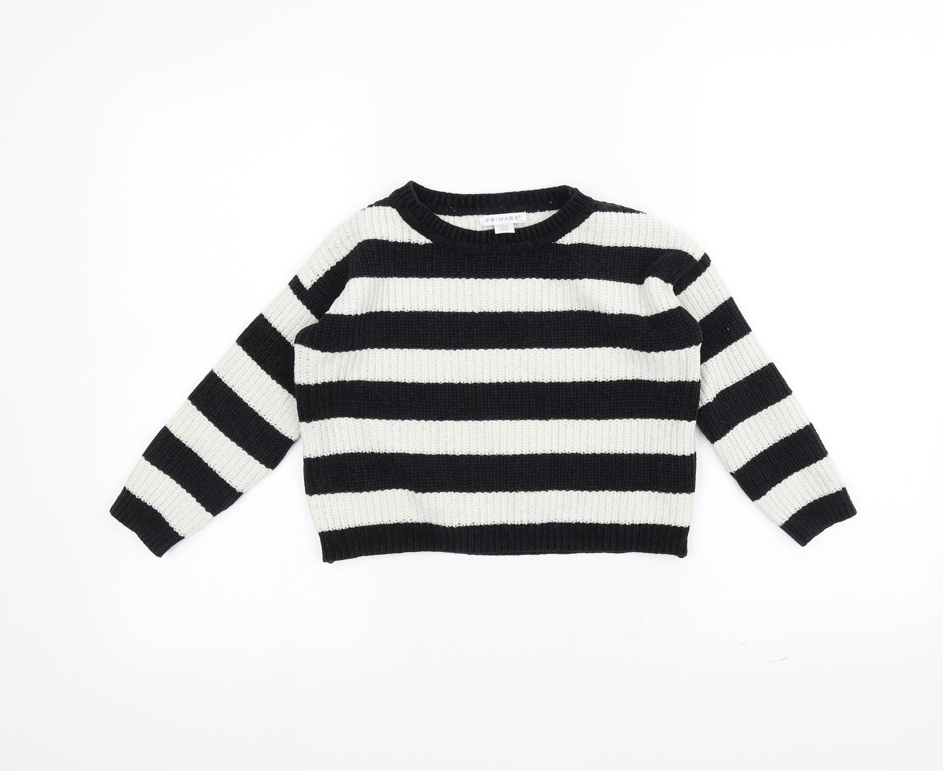 Girls White Striped Knit Pullover Jumper Size 6-7 Years