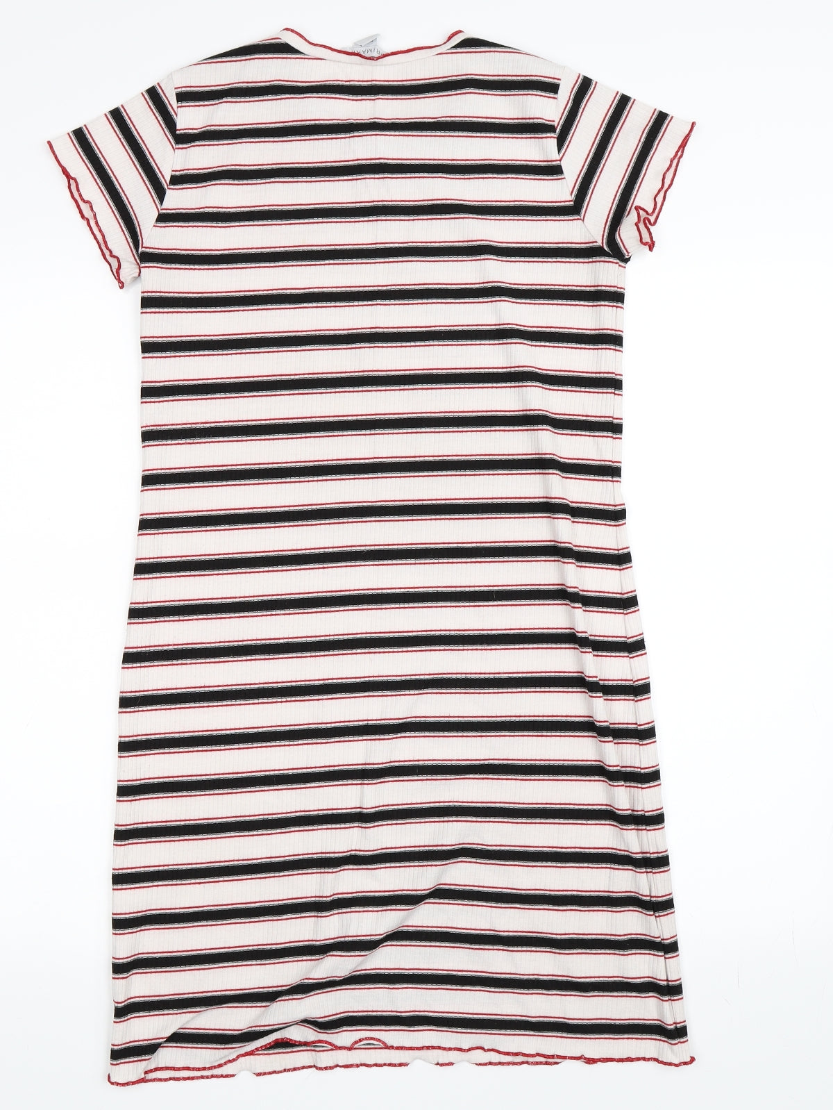 Girls White Striped T-Shirt Dress Size 13-14 Years