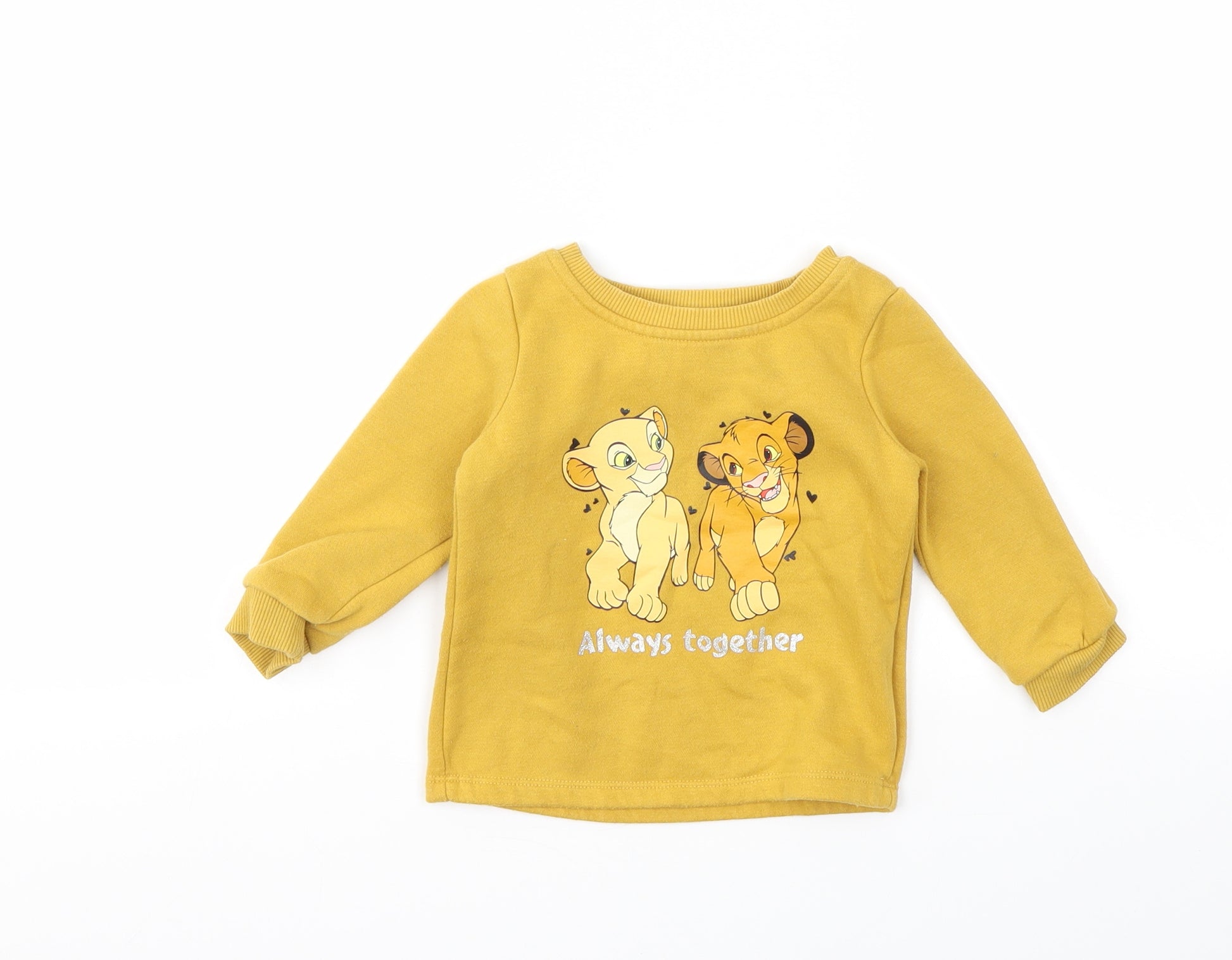 Girls Yellow Animal Print Pullover Jumper Size 18-24 Months