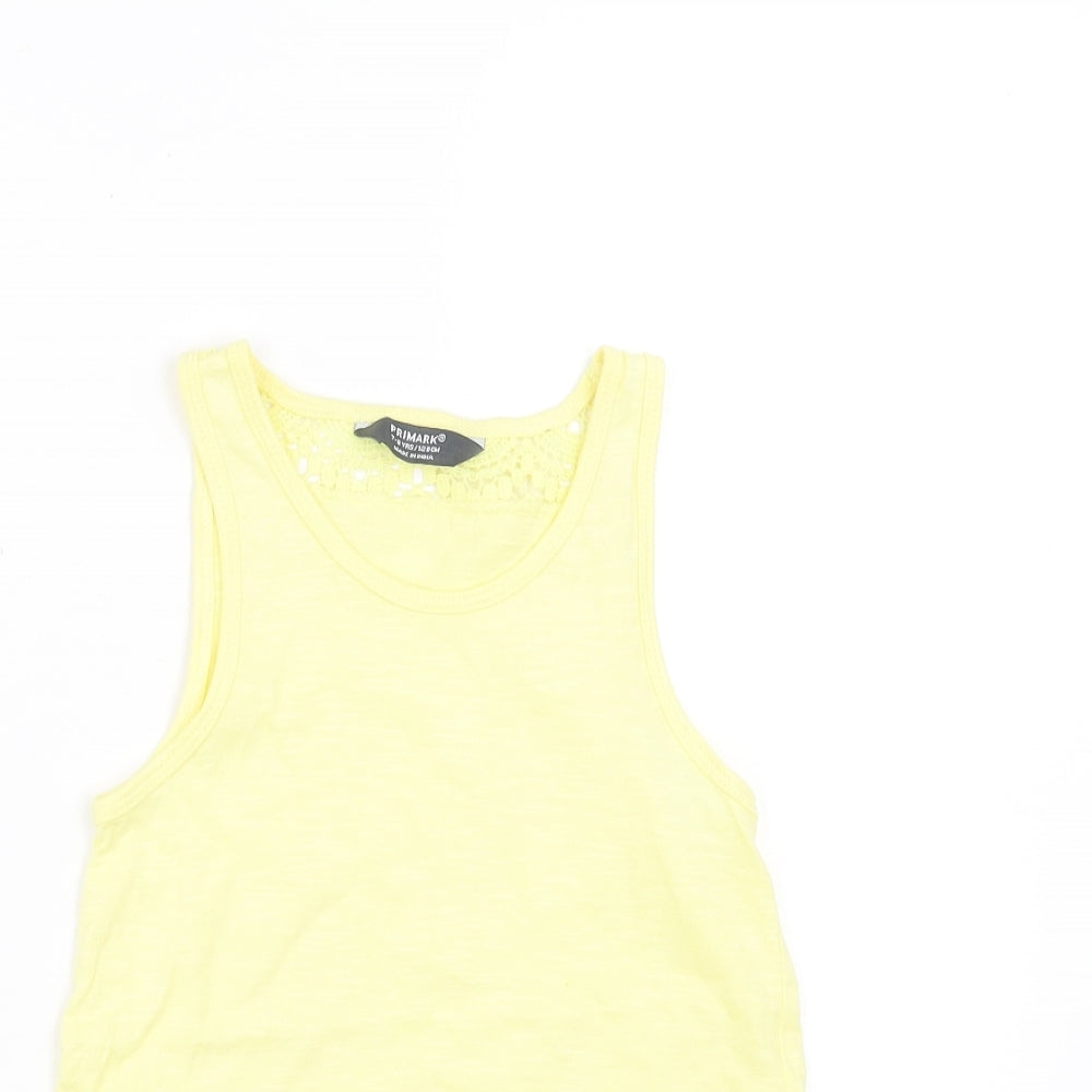 Girls Yellow Basic Tank Size 7-8 Years - lace hem