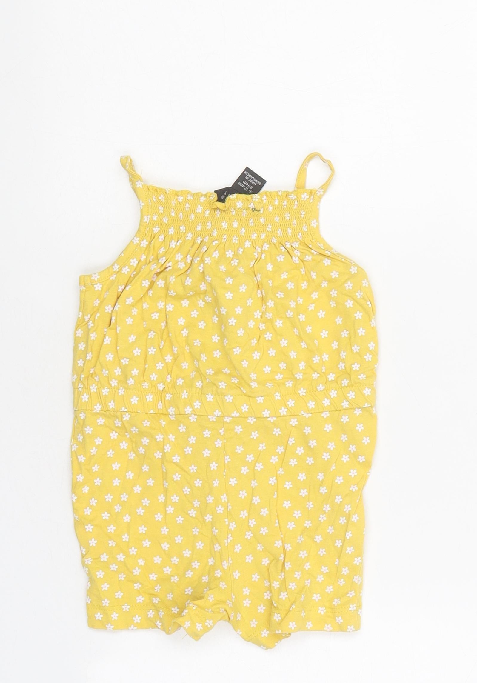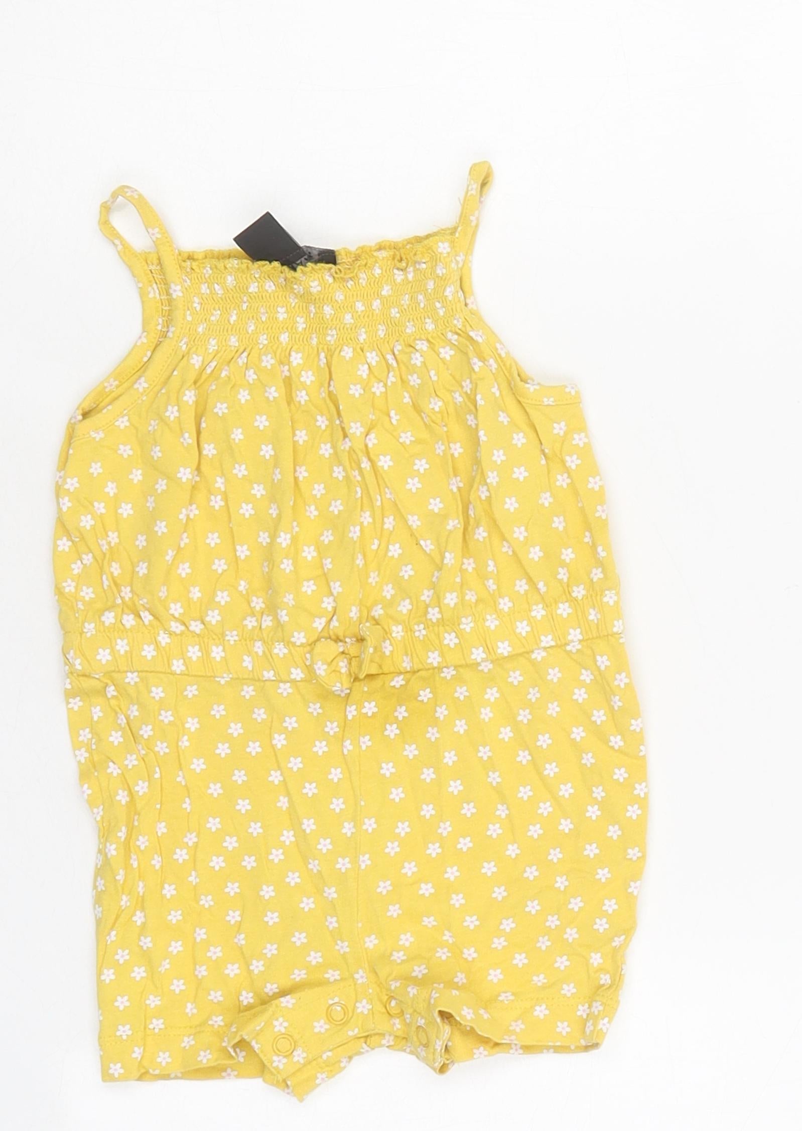 Girls Yellow Floral Polyester Playsuit One-Piece Size 9-10 Years Pullover