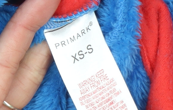 Stay cosy and embrace your inner superhero with this officially branded Primark Captain America fleece onesie. Designed for men in size XS-S, this all-in-one features the bold red, white and blue colours and iconic star-and-shield design inspired by the Marvel Universe character. Crafted from ultra-soft fleece fabric made of 100% polyester, it ensures maximum warmth and comfort for lounging at home or bedtime during the colder months. The hood comes complete with a large printed 'A' detail, delivering authentic superhero style. This zip-front onesie is lightweight enough for relaxed wear while keeping you snug, making it ideal for winter nights in or themed sleepwear events. The long sleeves and elasticated cuffs enhance comfort and heat retention, while the overall fit allows easy movement. With its eye-catching graphic print pattern and cape-free practicality, this nightwear piece brings both fun and function to your off-duty wardrobe. Excellent pre-owned condition with only minimal signs of light wear, fully machine washable for easy care. Perfect for fans of Marvel and casual wearers alike who appreciate comfort with character appeal, this fleece onesie offers quality, cosiness, and a timeless superhero aesthetic at an affordable price. Add it to your collection, or gift it to a loved one who’s a Captain America enthusiast. Wrap up, relax, and enjoy the warmth and style of Primark’s officially licensed Marvel sleepwear – the ultimate winter loungewear essential for comic book fans and comfort seekers.