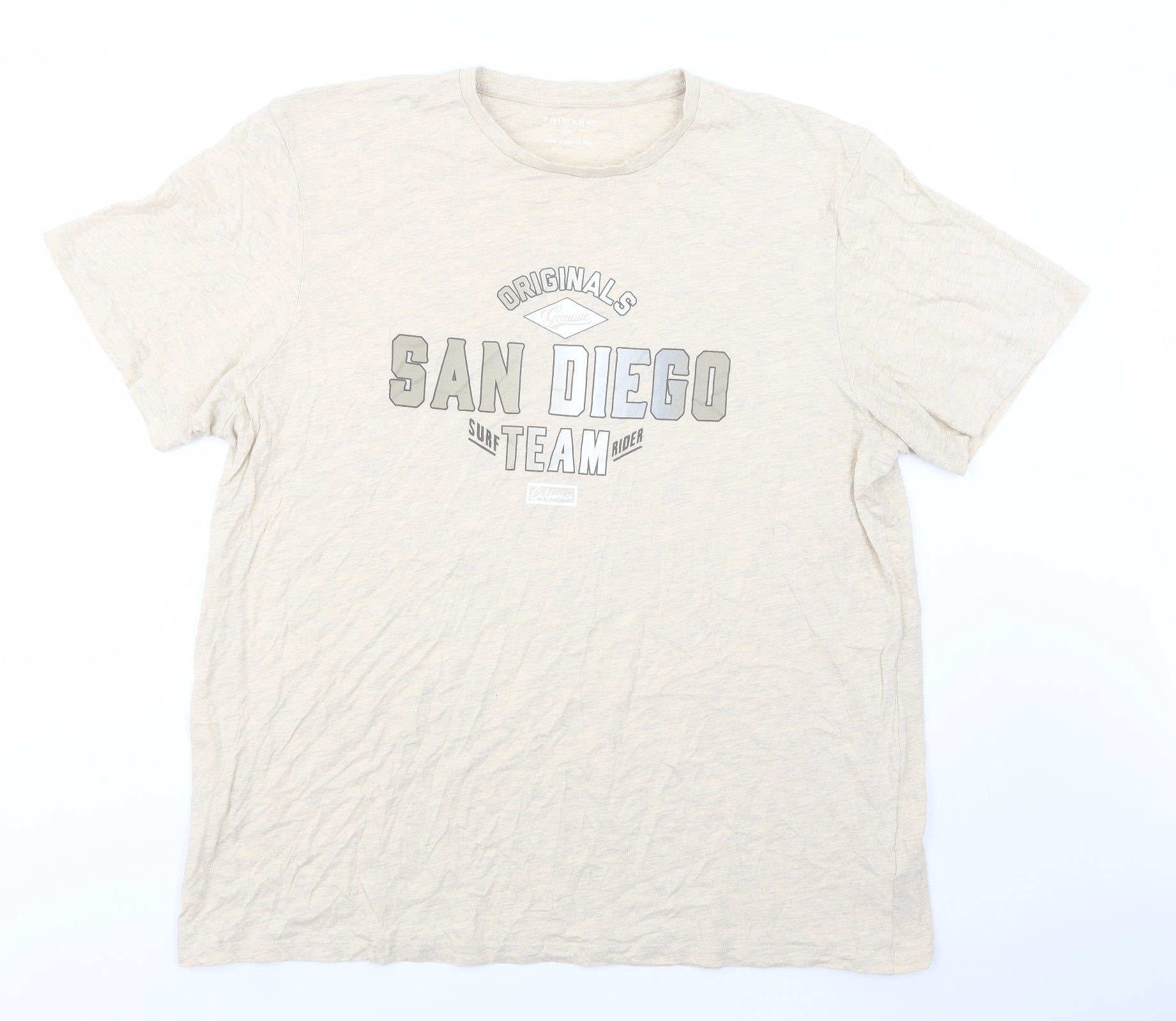 Mens Beige Cotton T-Shirt Size 3XL Crew Neck - San Diego