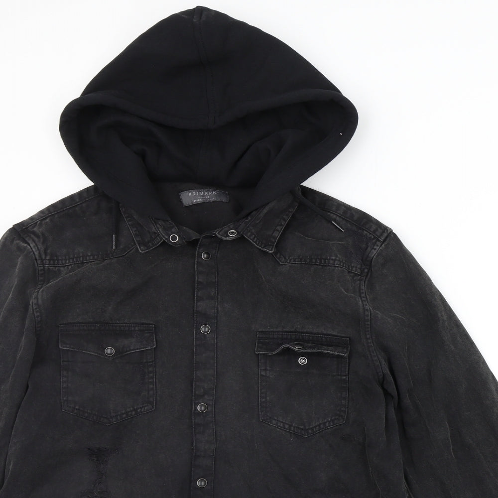 Mens Black Cardigan Hoodie Size L - DISTRESSED