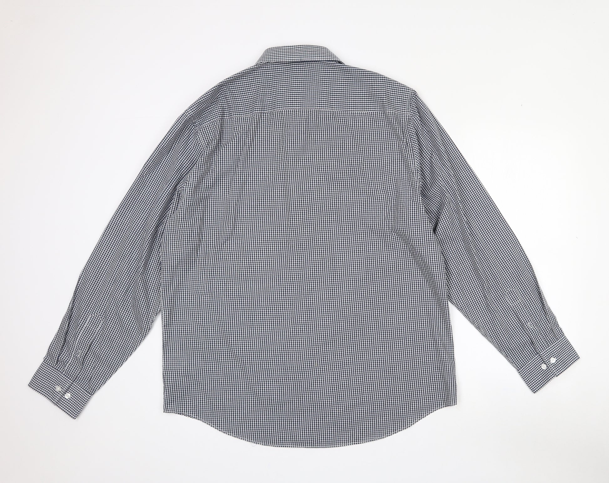 Mens Black Check Polyester Dress Shirt Size 17 Collared Button - Tailored fit