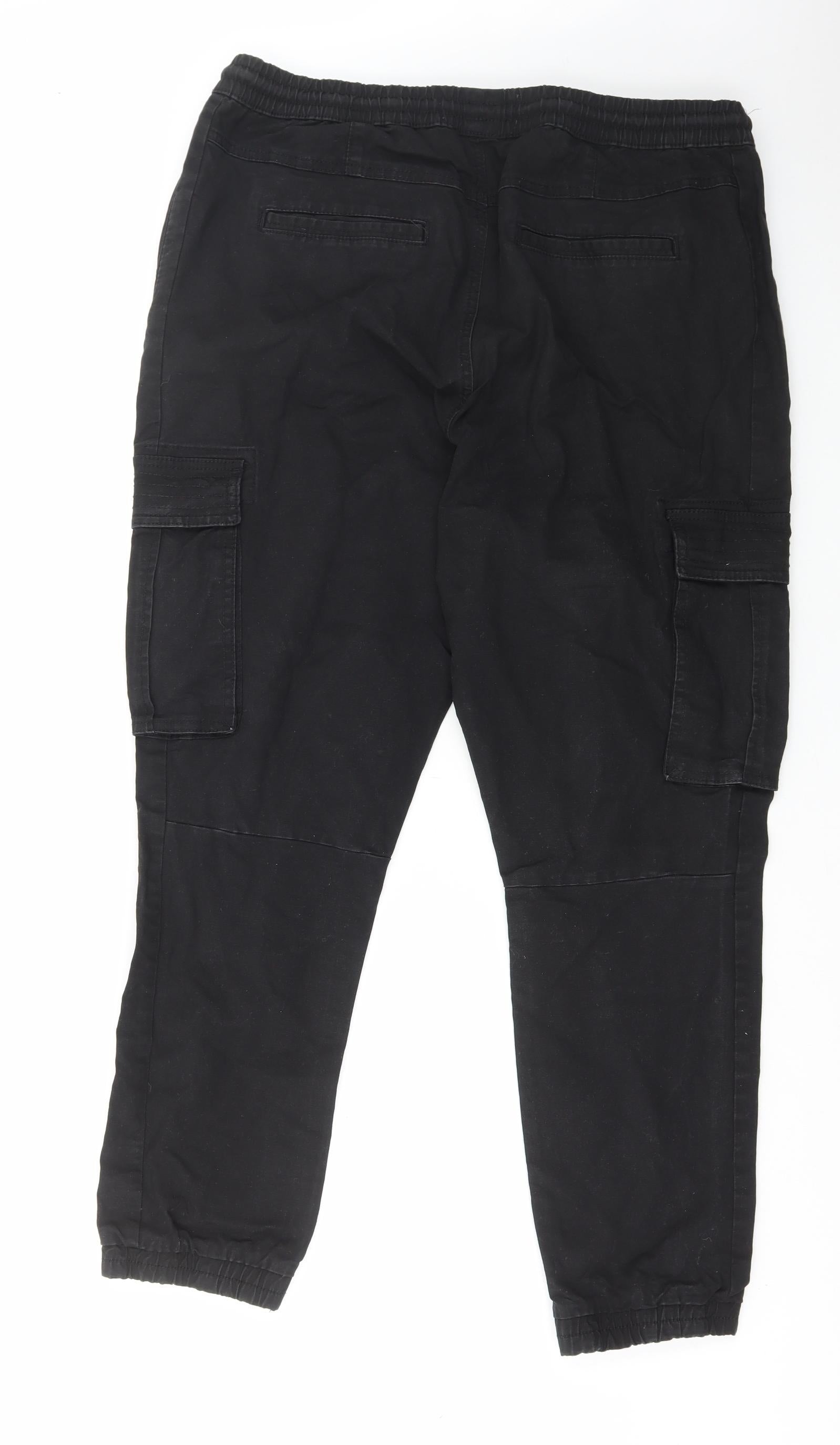 Mens Black Cotton Cargo Trousers Size XL L28 in Regular Drawstring