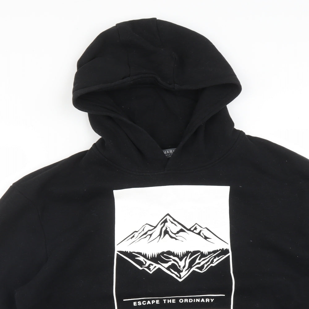 Mens Black Cotton Pullover Hoodie Size L - Escape the ordinary