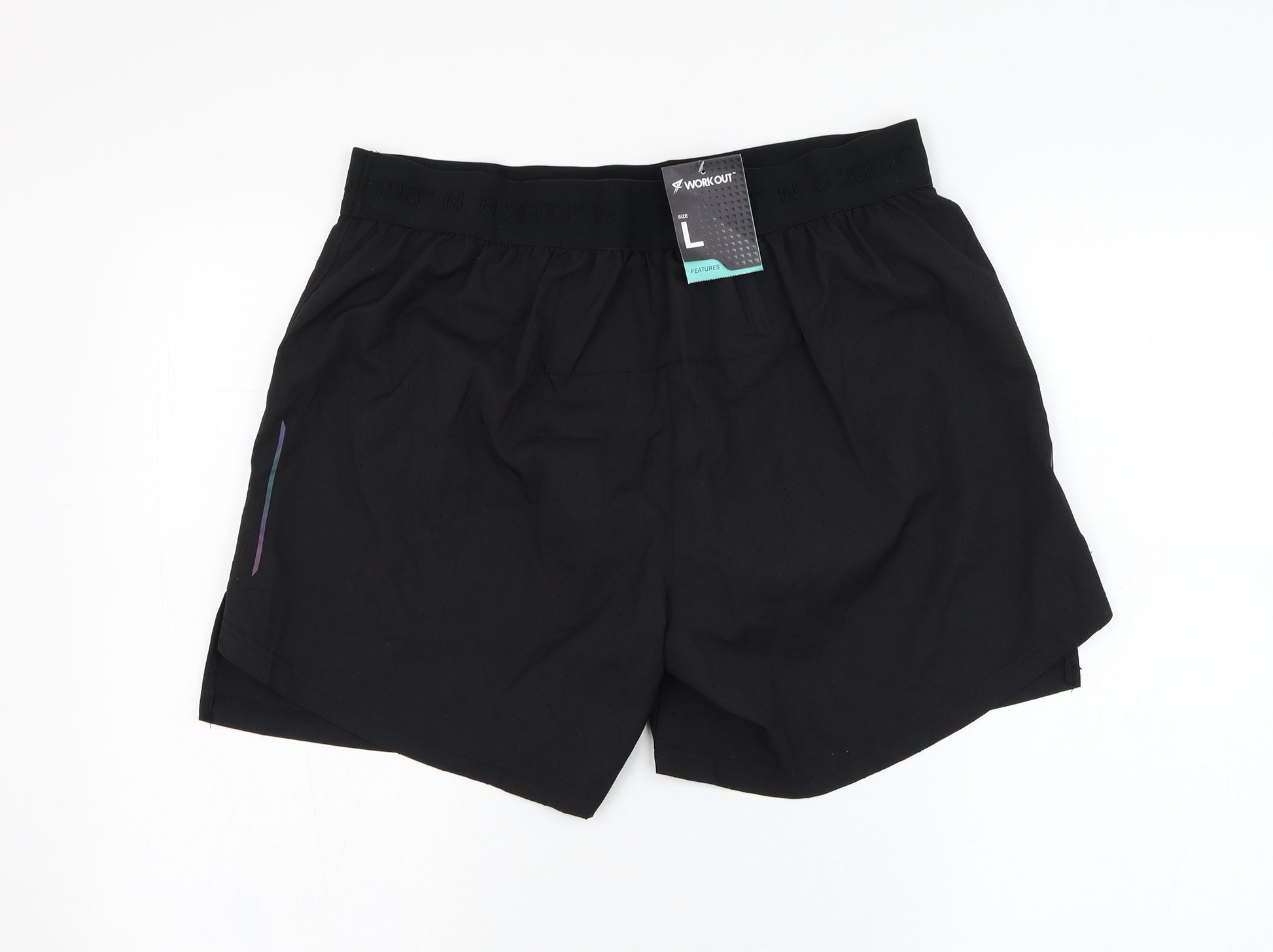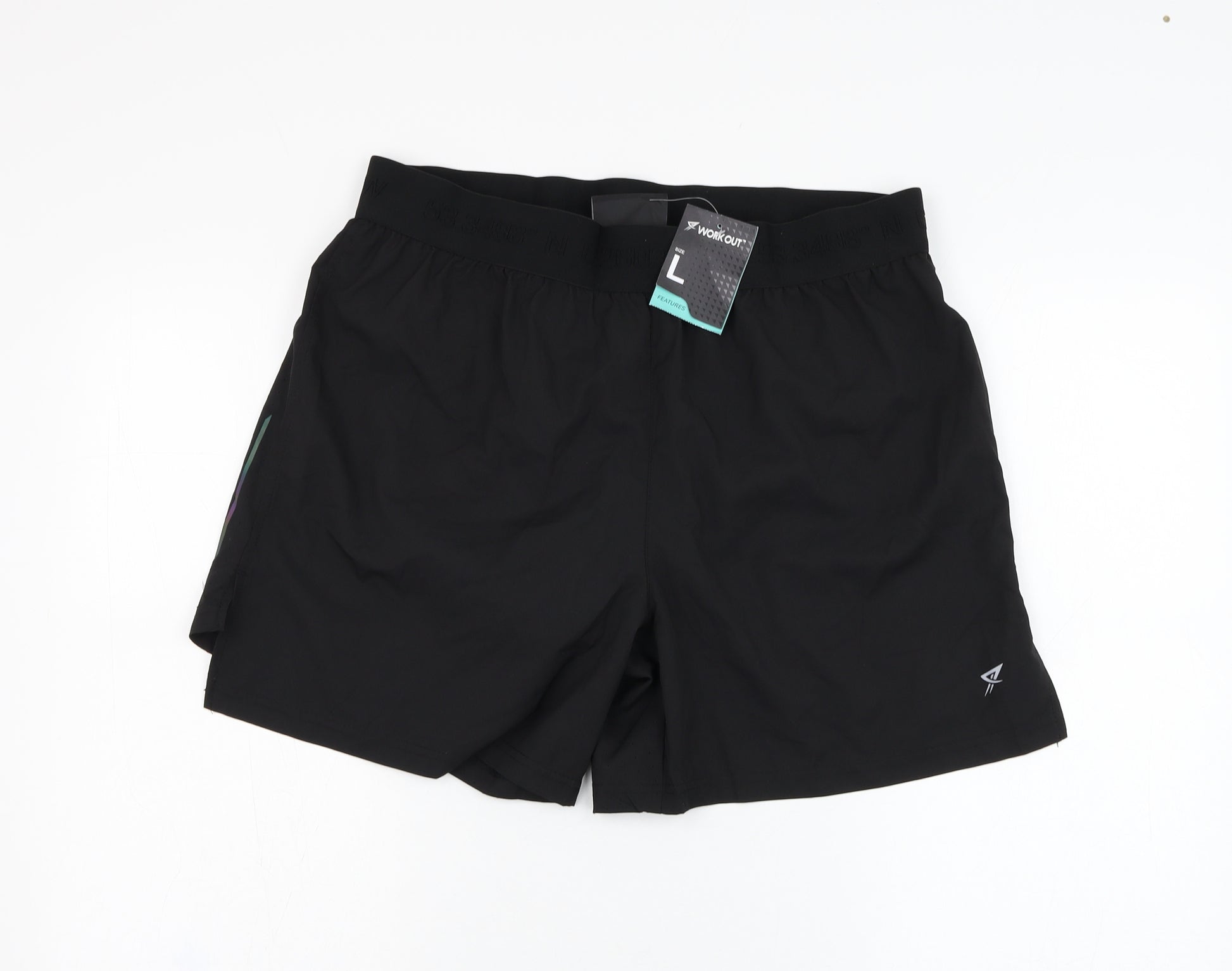Mens Black Polyester Athletic Shorts Size L L6 in Regular
