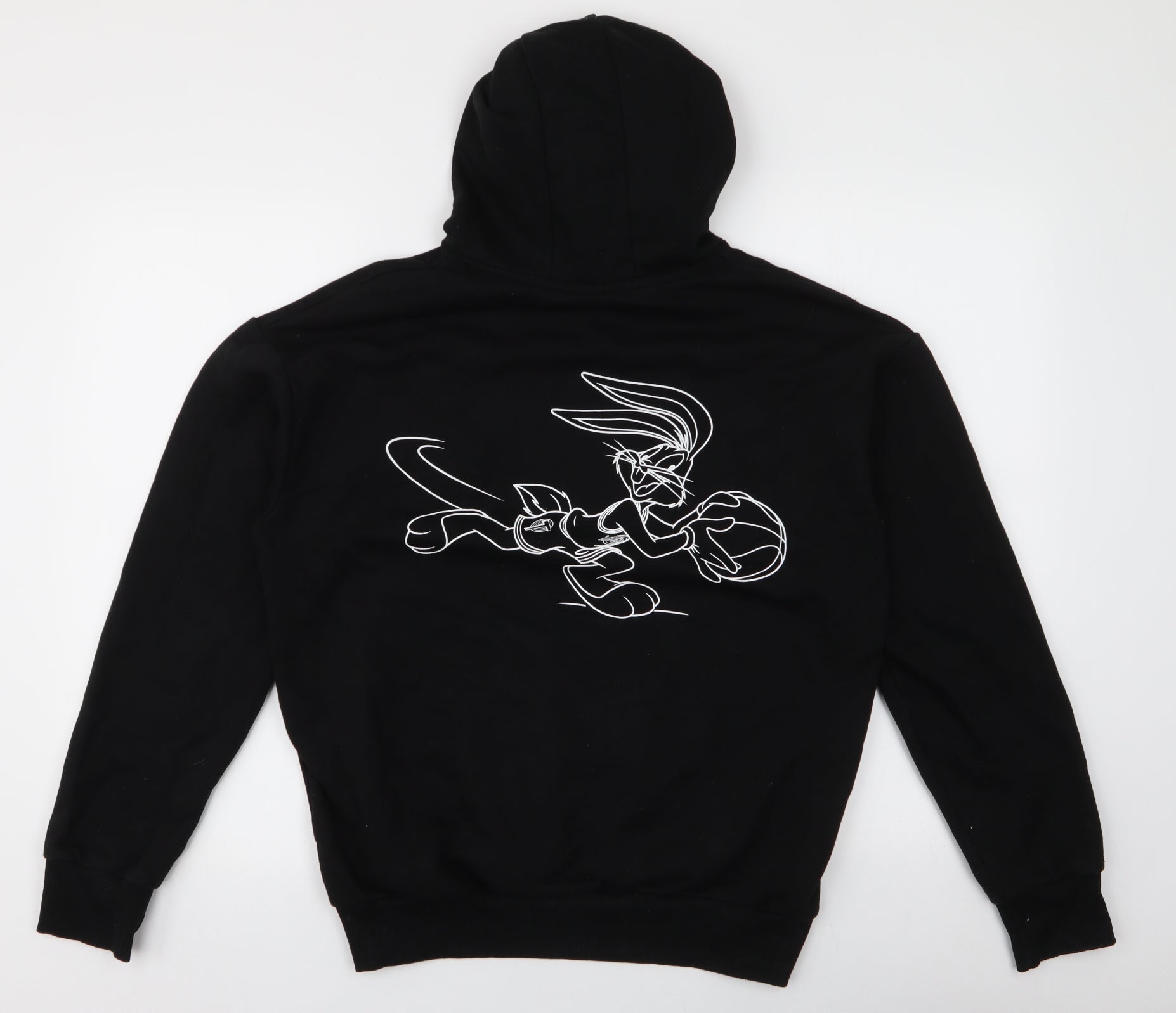 Mens Black Polyester Pullover Hoodie Size M - Space jam
