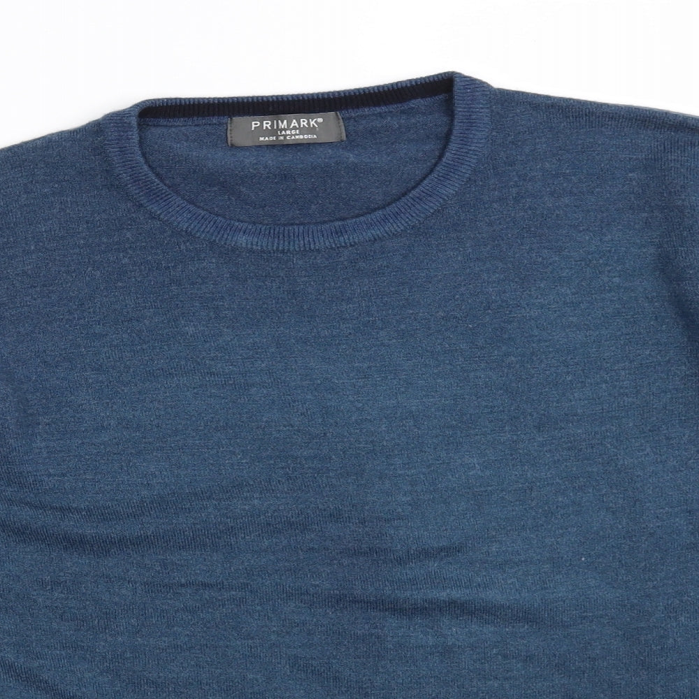 Mens Blue Crew Neck Acrylic Pullover Jumper Size L