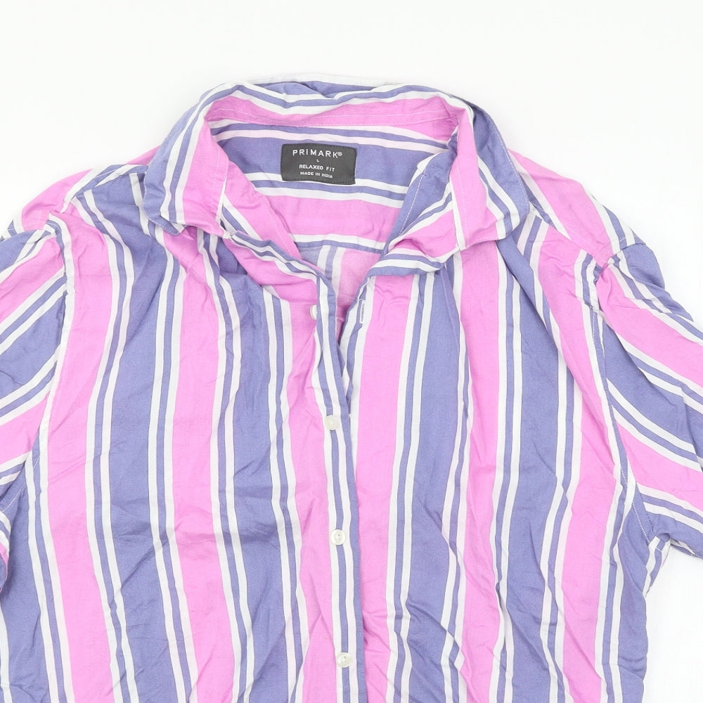 Primark Mens Brown Cotton Button-Up Size L Collared Button