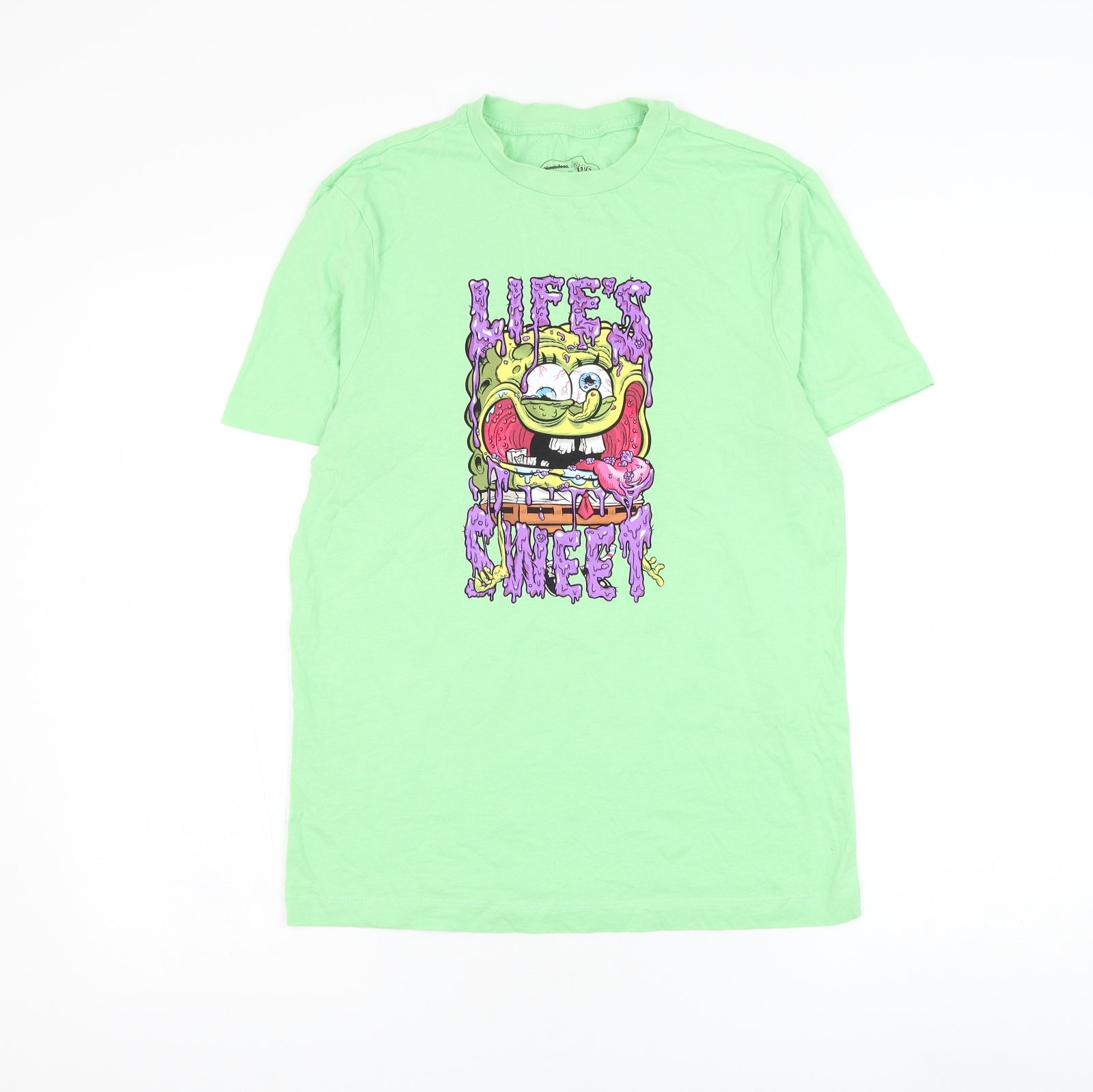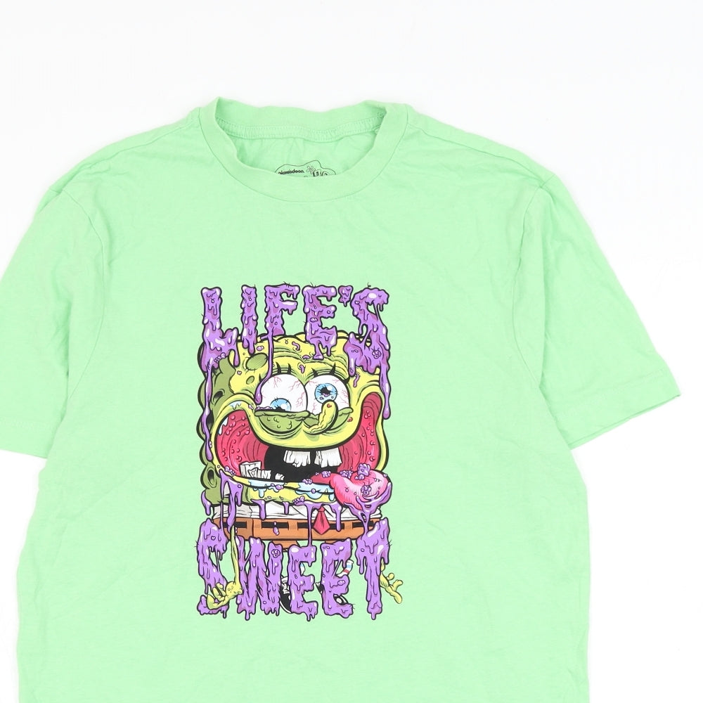 Mens Green Cotton T-Shirt Size S Round Neck - Spongebob
