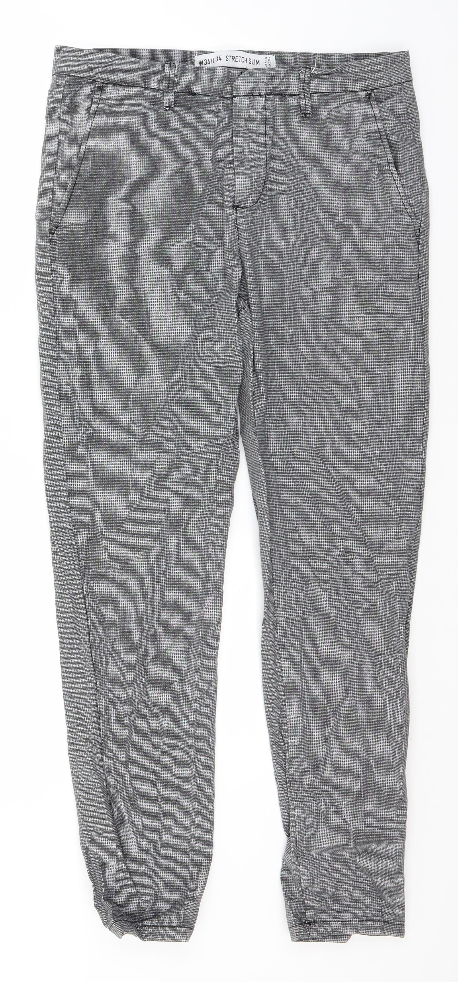 Mens Grey Check Cotton Trousers Size 34 in L30 in Regular