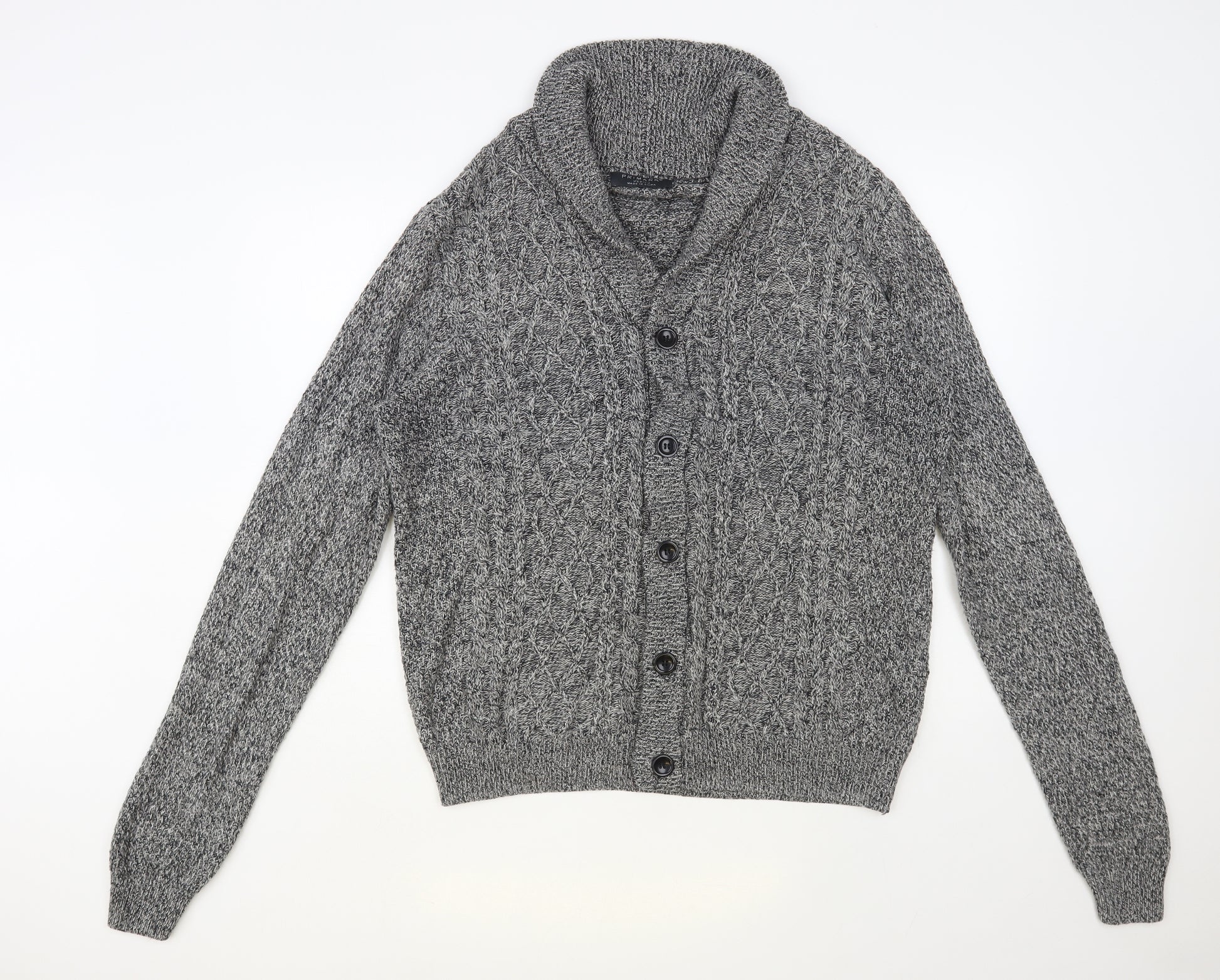 Mens Grey Collared Acrylic Cardigan Jumper Size M