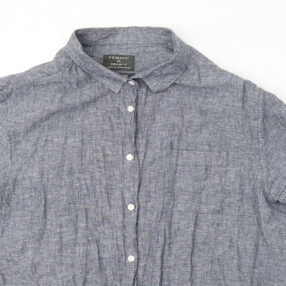 Mens Grey Linen Button-Up Size 2XL Collared Button
