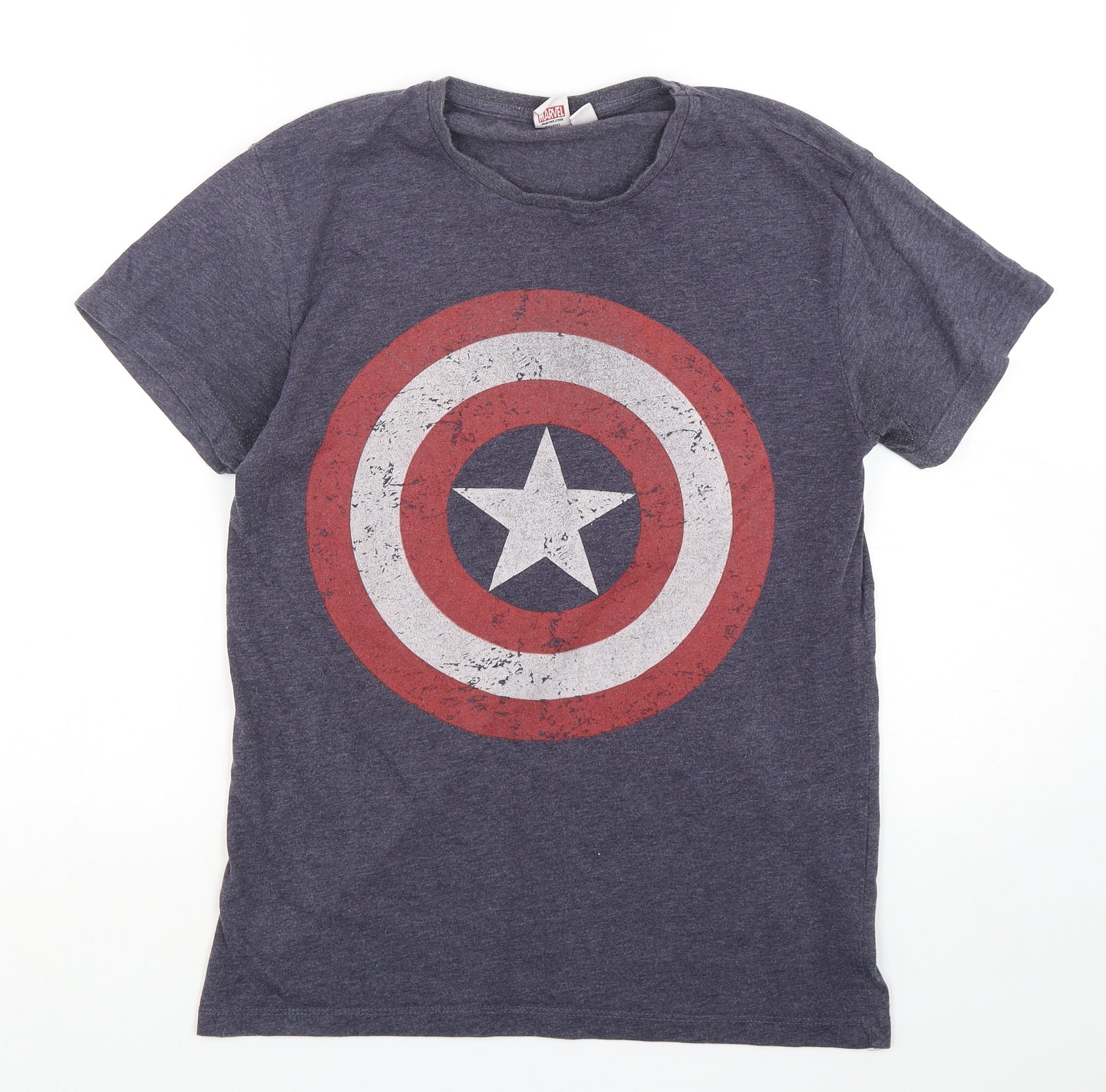 Mens Grey Polyester T-Shirt Size S Round Neck - Captain America