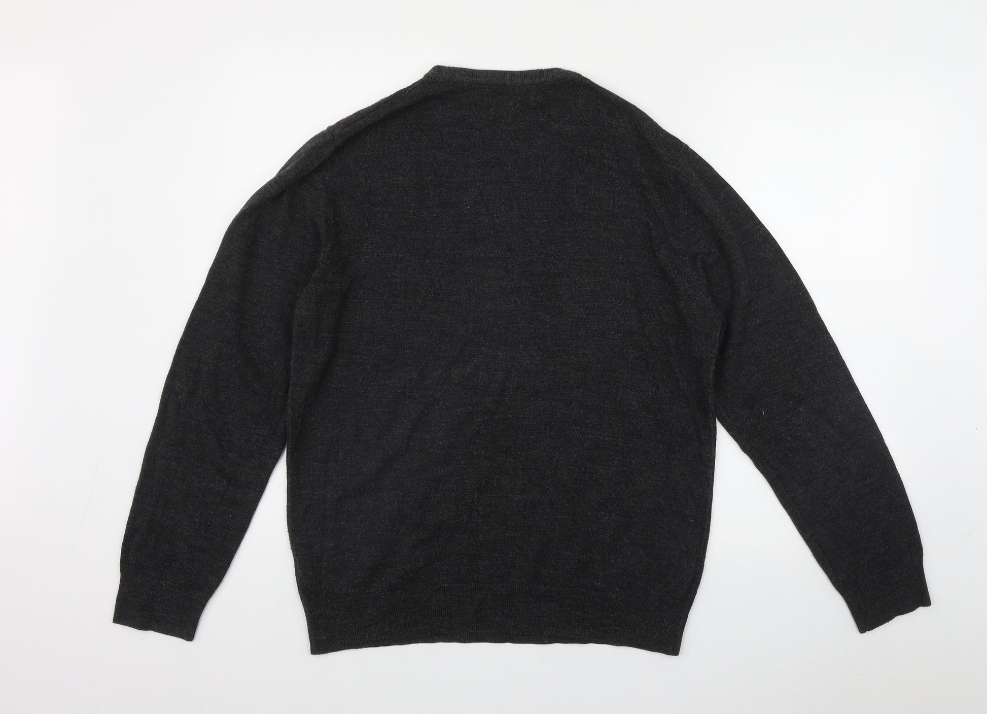 Mens Grey Round Neck Acrylic Pullover Jumper Size XL