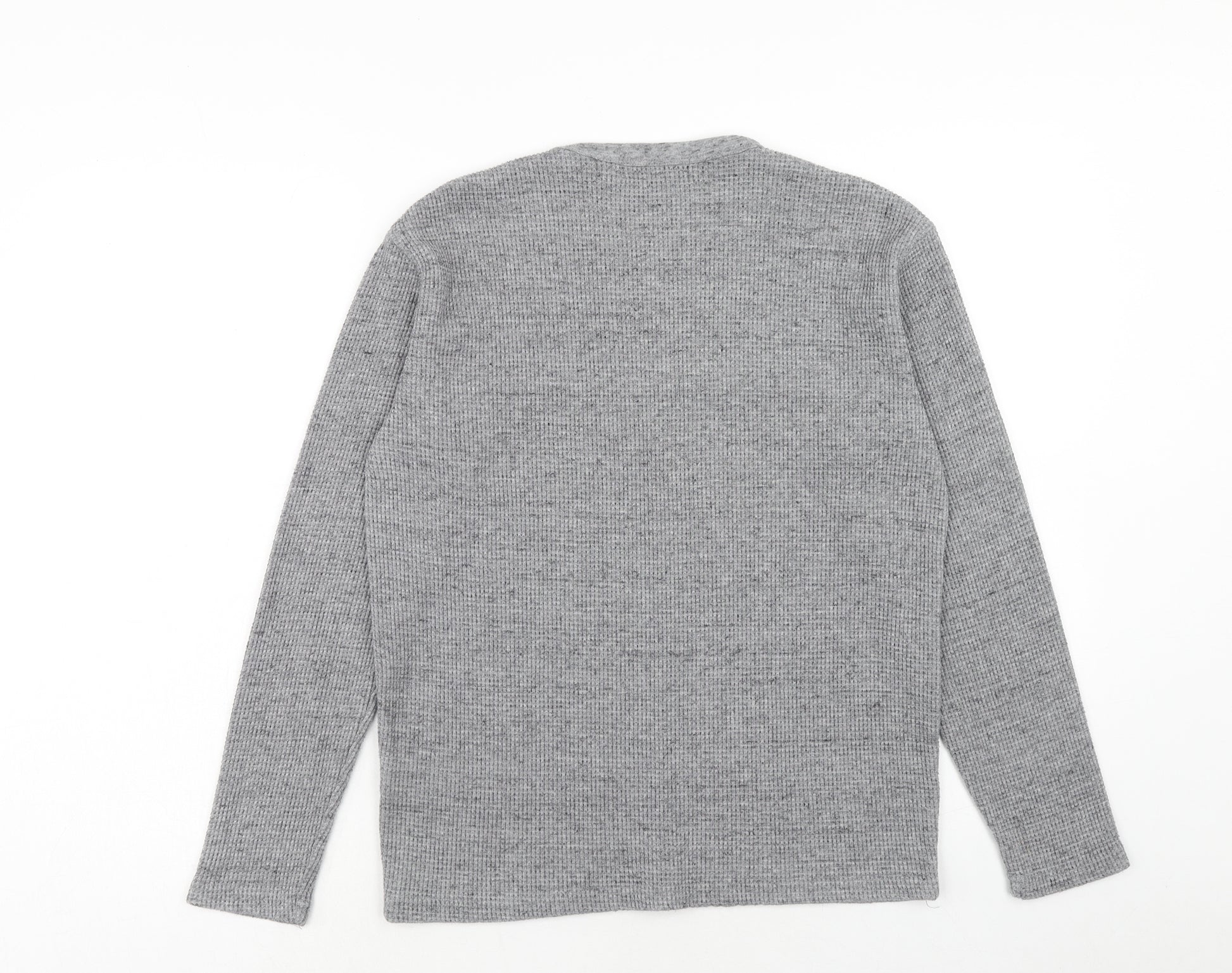 Mens Grey Round Neck Herringbone Polyester Pullover Jumper Size S Long Sleeve