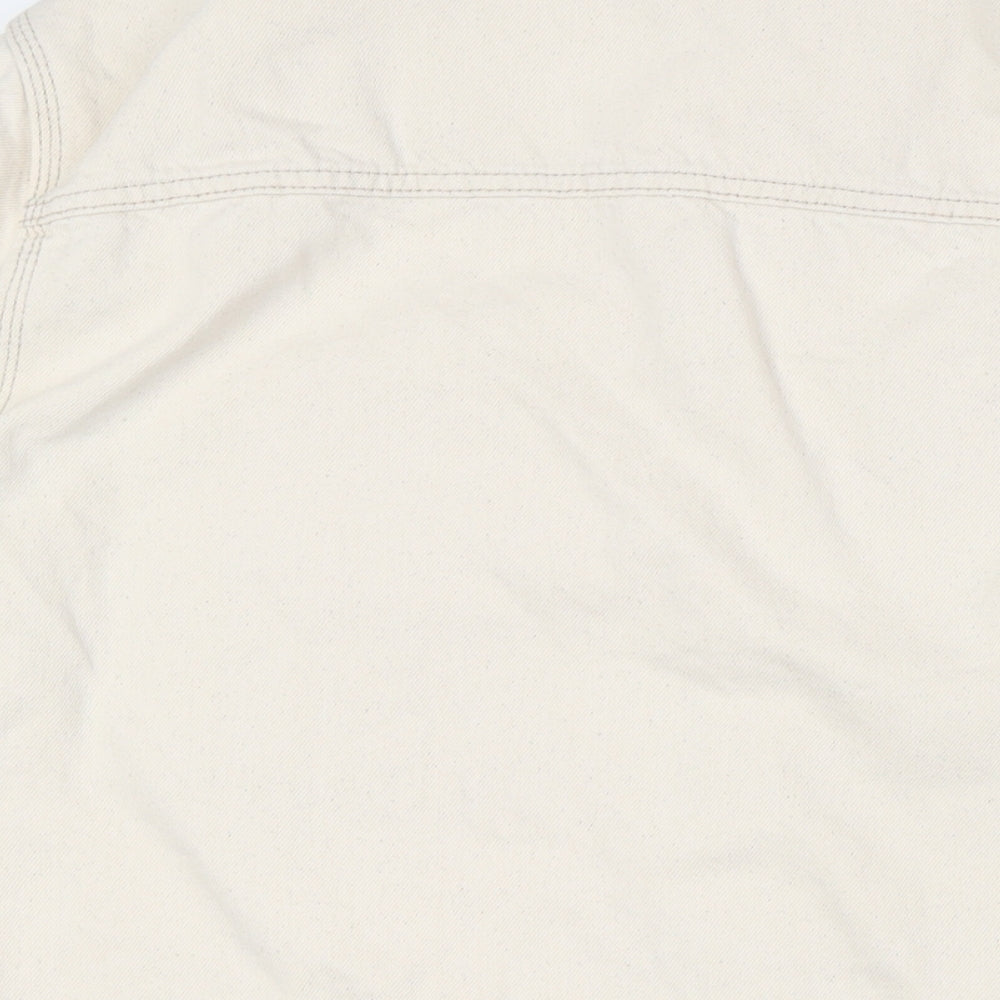 Mens Ivory Cotton Button-Up Size L Collared Button