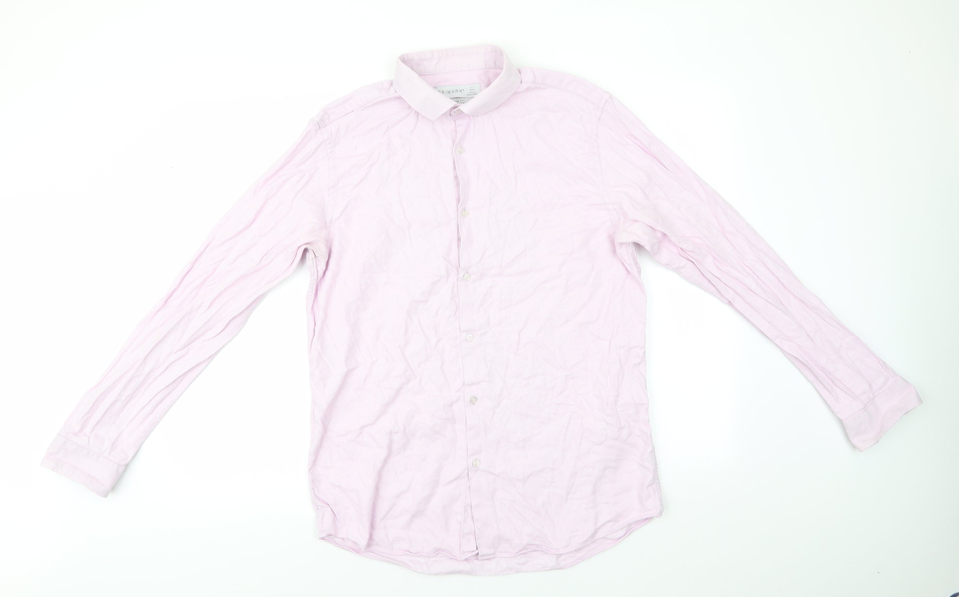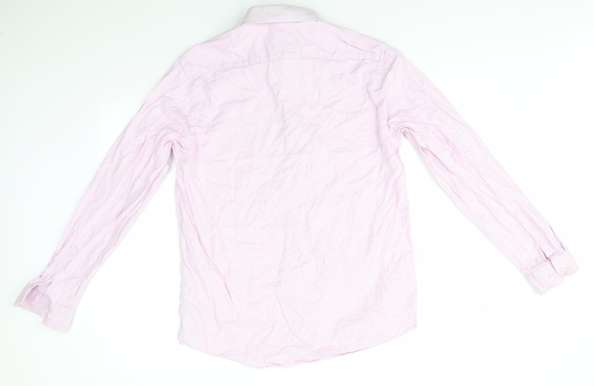 Mens Pink Cotton Dress Shirt Size 17 Collared Button - Pink White mix 17 inch collar
