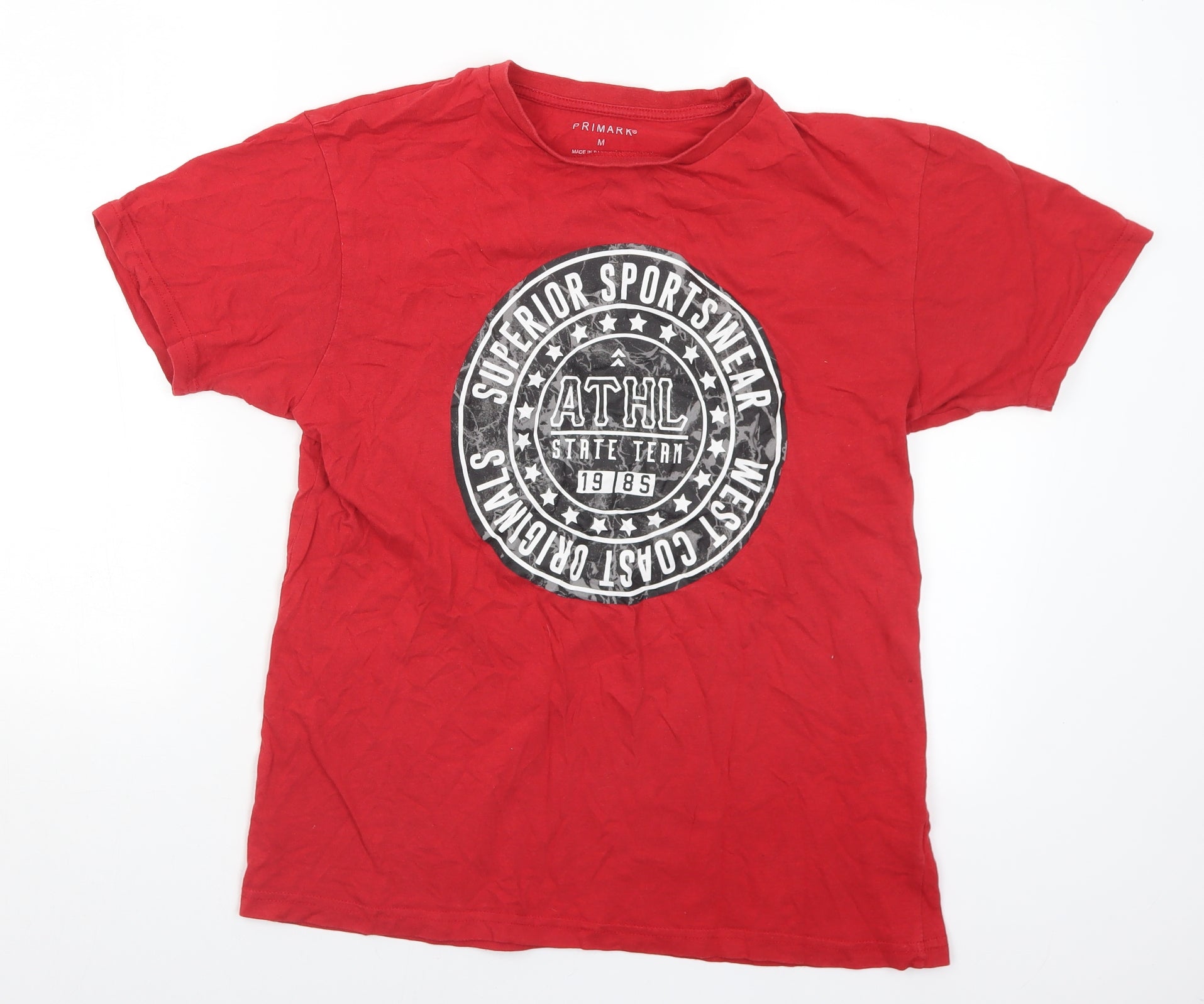 Mens Red Cotton T-Shirt Size M Crew Neck - Sportswear