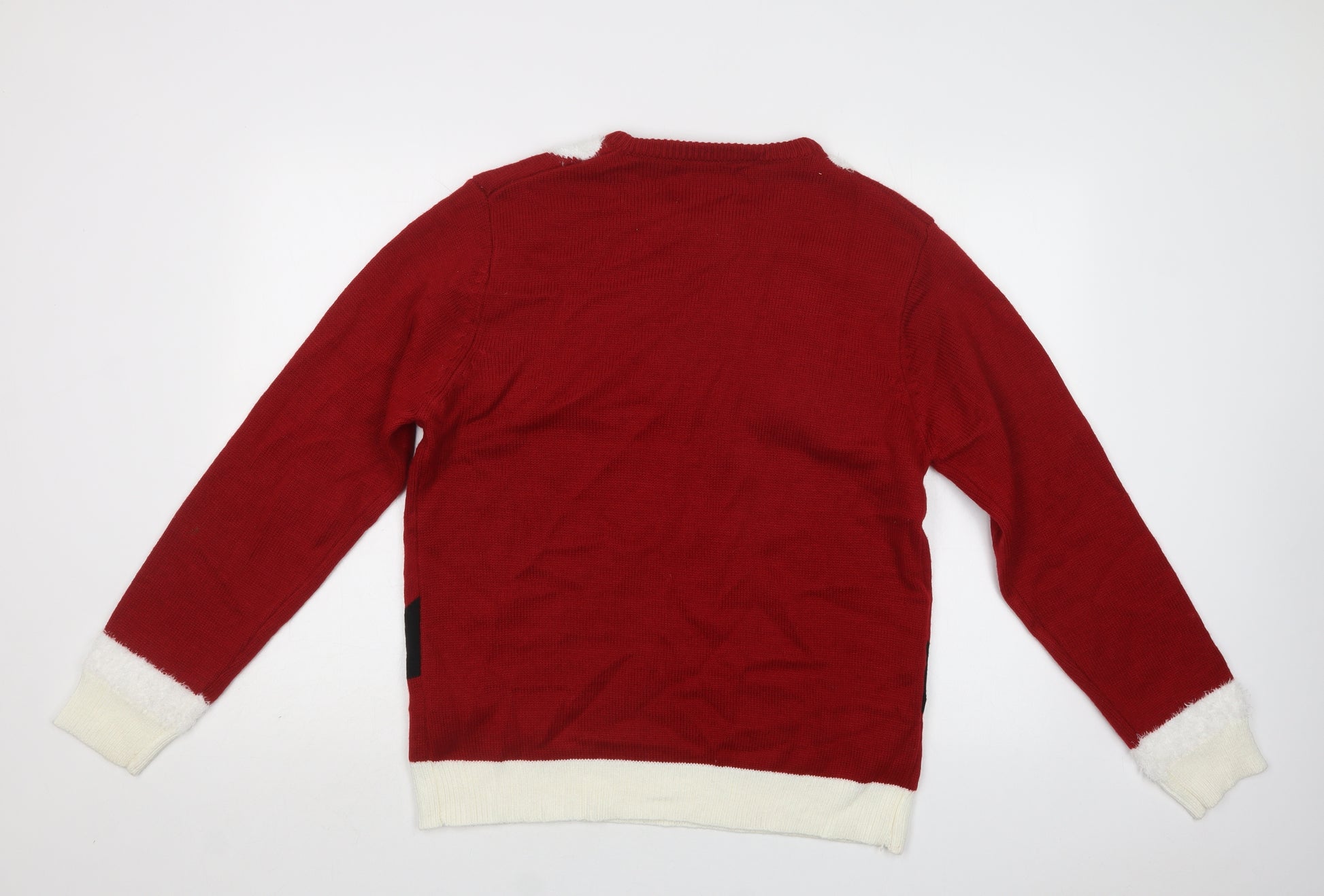 Mens Red Crew Neck Acrylic Pullover Jumper Size L - Christmas Jumper