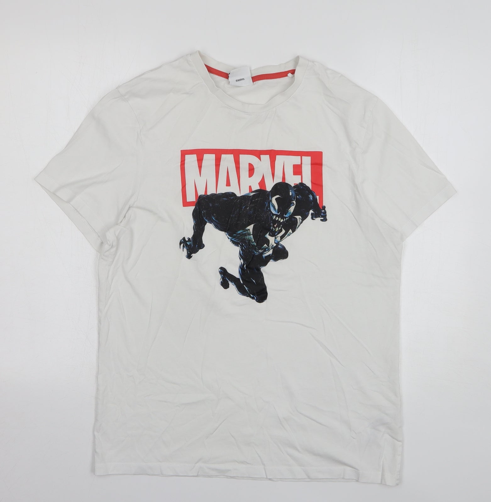 Mens White Cotton T-Shirt Size L Crew Neck - Marvel Venom
