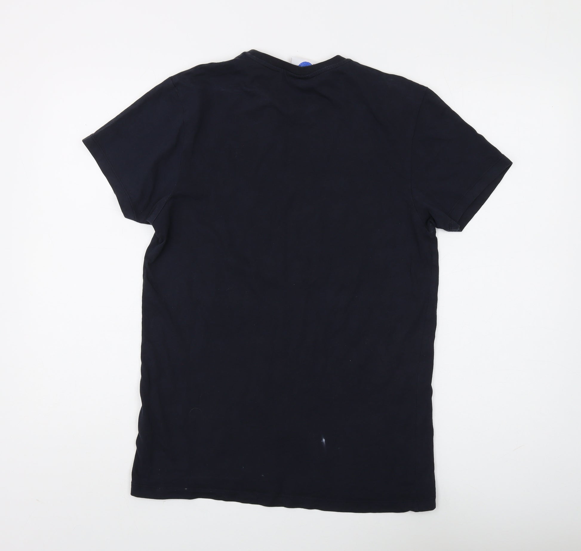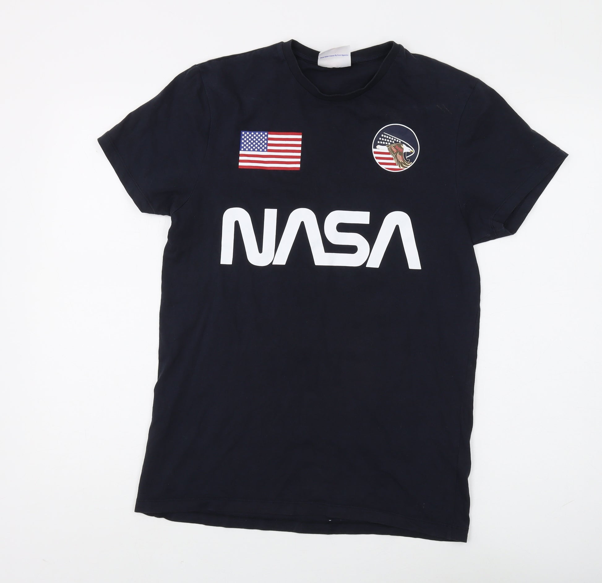 This stylish Men's NASA T-Shirt from Primark is the perfect addition to any space enthusiast's wardrobe. Designed in a versatile black colour, the shirt features a classic crew neck and short sleeves, ensuring comfort and ease of movement. Made from high-quality 100% cotton jersey fabric, this t-shirt offers a soft and breathable feel, making it ideal for all seasons. The standout graphic print showcases the iconic NASA logo, appealing to fans of space exploration and science. This regular-fit shirt is machine washable, ensuring easy care. Although pre-owned, the t-shirt is in excellent condition with only slight wear visible, providing a great opportunity to own a unique piece. Update your casual wear with this modern yet timeless design that pairs perfectly with jeans or shorts for a laid-back style.