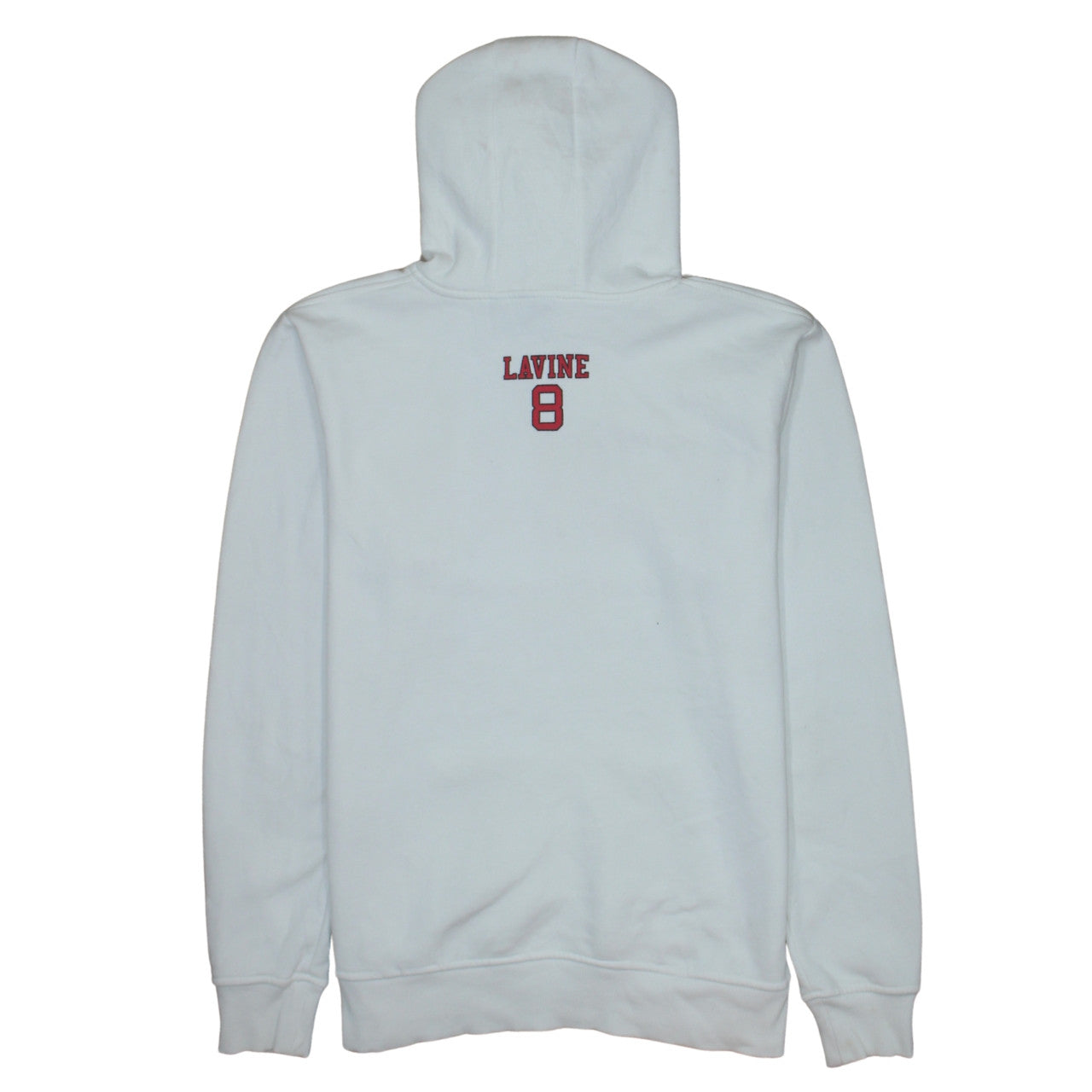 Step into sporty comfort with this officially licensed NBA Chicago Bulls hoodie from Primark, designed for men who appreciate both style and team pride. Made from a soft fleece fabric blend of cotton and polyester, this pullover hoodie offers warmth and breathability, ideal for cooler days in autumn, winter, or spring. The crisp white colour contrasts perfectly with the bold red Chicago Bulls logo, featuring Lavine’s number 8, giving it an authentic basketball-inspired vibe. The hoodie includes a classic drawstring closure and a spacious front kangaroo pocket, making it both functional and stylish. With its regular fit and long sleeves, it provides a relaxed yet flattering silhouette suitable for everyday wear or layering over your favourite tee. The ribbed cuffs and hem enhance fit and durability, while the heavyweight fleece ensures comfort whether you're watching the game, training, or lounging. Subtle NBA branding further adds to this piece’s appeal for basketball fans and casual wearers alike. The overall condition is very good, with only a minor mark on the pocket, showing gentle previous wear while maintaining excellent structure and softness. Perfect for gym sessions, casual outings, or supporting your team, this hoodie blends comfort, athletic style, and fandom effortlessly. Machine washable for easy care, it's designed to be both practical and fashionable. Complete your laid-back sportswear look with this versatile Primark NBA Chicago Bulls hoodie — an essential addition to any fan's wardrobe or a great gift for basketball enthusiasts looking to showcase their team spirit. With its premium feel, classic pullover design, and iconic Bulls detailing, it’s an easy pick for a stylish, relaxed outfit that shows your love for the game and your team.