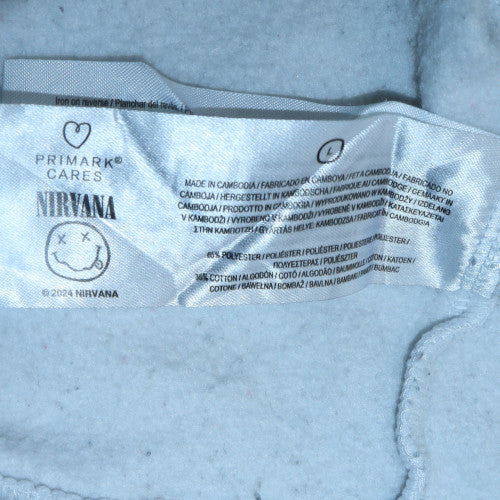 Add a touch of grunge nostalgia to your casual wardrobe with this women’s Nirvana hoodie from Primark Cares. Crafted from a soft cotton and polyester blend, it delivers comfort, warmth, and durability for everyday wear. The pullover design features a roomy hood with drawstring closure and a cosy front kangaroo pocket, perfect for keeping your hands warm or storing small essentials. The crisp white colourway makes the bold front and back Nirvana angel graphics stand out, celebrating the band’s iconic style. Designed in a relaxed fit with long sleeves and ribbed cuffs and hem, it’s ideal for layering during cooler months or wearing on its own for a relaxed streetwear vibe. Whether you're lounging at home, heading to a gig, or styling it for a casual day out, this hoodie’s timeless aesthetic will keep you effortlessly stylish. Perfect for fans of the legendary band and lovers of retro rock-inspired fashion, this Primark Nirvana sweatshirt captures the essence of 90s alternative culture. Pair it with jeans or leggings for a laid-back yet trend-led look. This piece offers both comfort and fashion with its easy-care fabric and breathable composition. It’s a must-have addition to any wardrobe that values both music heritage and casual versatility.