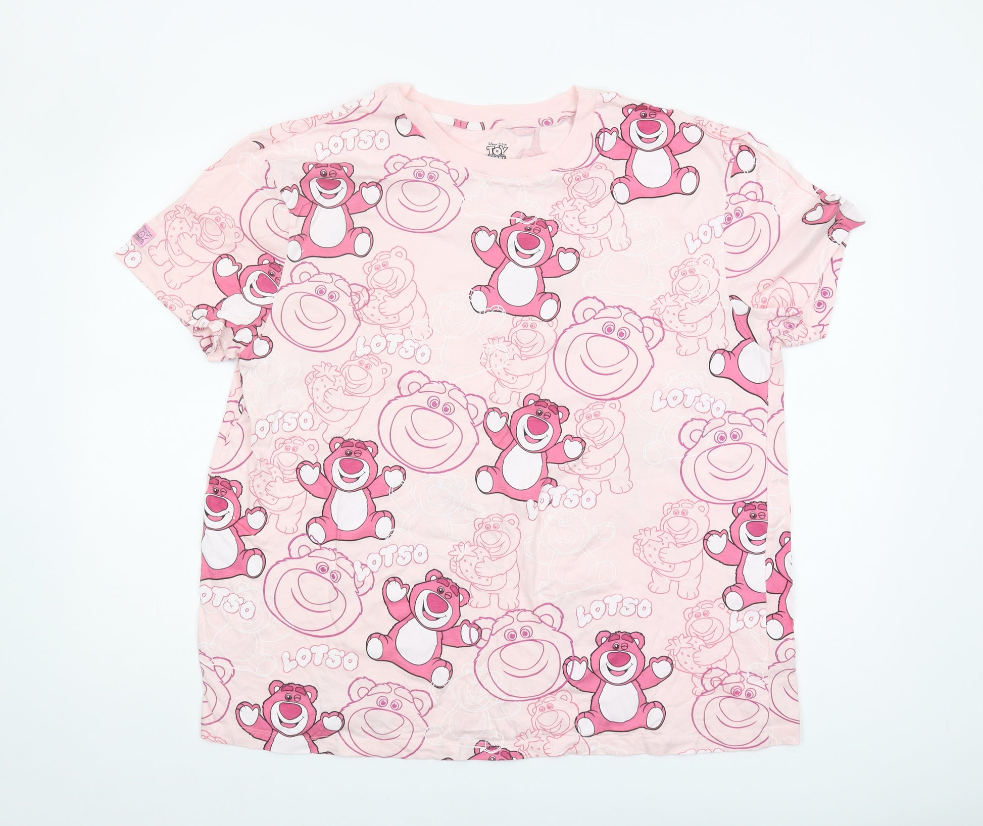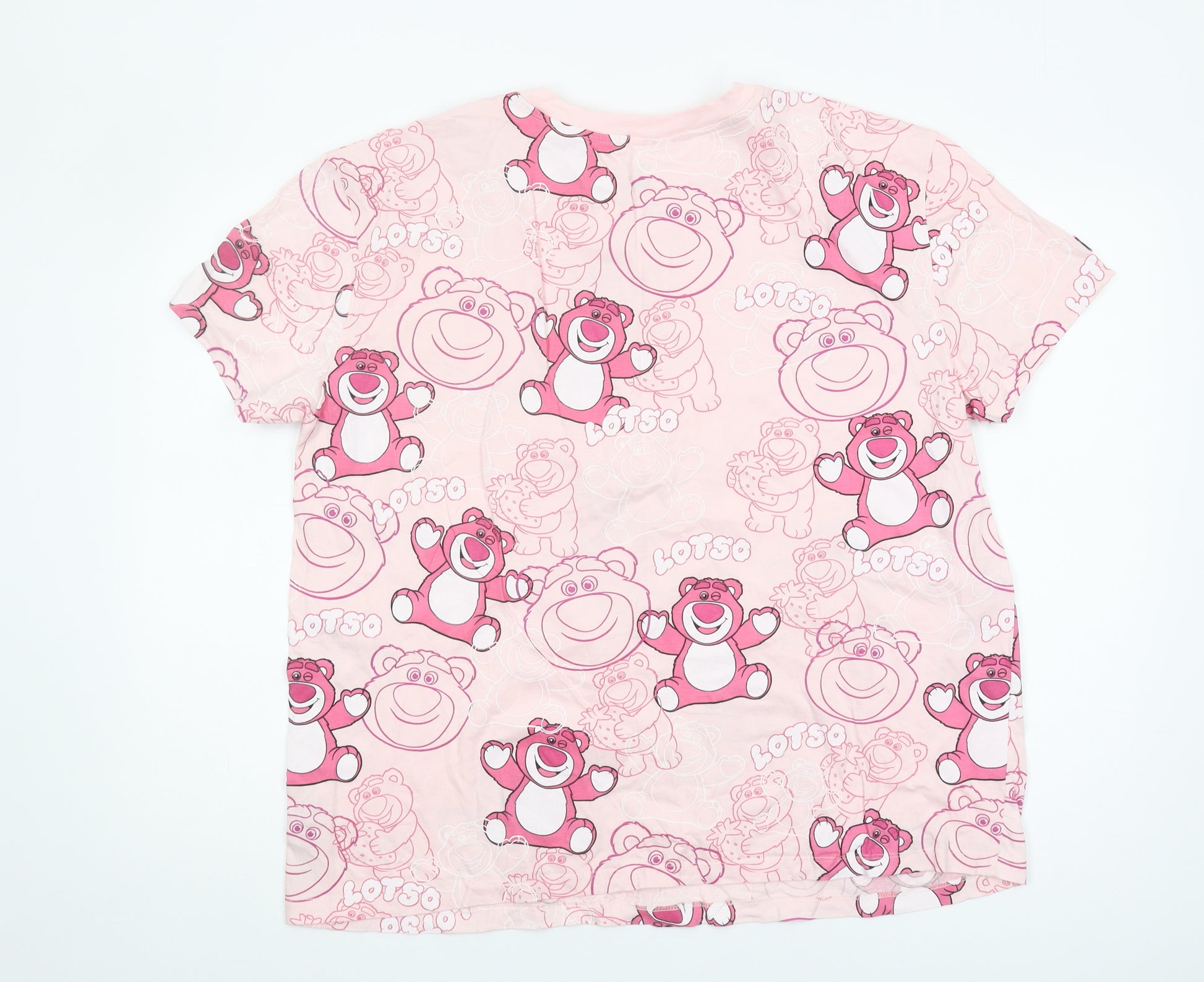 Elevate your casual wardrobe with this charming Primark Toy Story T-Shirt in size L. Perfect for women who adore playful fashion, this top features a delightful pink hue and is emblazoned with fun, eye-catching graphics of Lotso from the beloved Toy Story series. Crafted from soft, breathable 100% cotton jersey, this t-shirt promises comfort and style in equal measure. Whether you're heading out for a casual day with friends or lounging at home, this shirt offers a relaxed fit and short sleeves, ensuring an easy, breezy wear. Its crew neckline adds a classic touch, making it a versatile piece for any season. Embrace your inner child with this cartoon-themed top, ideal for casual occasions. Machine washable for your convenience, it's easy to keep this tee looking fresh and vibrant. A must-have for any Toy Story fan, this adorable shirt is ready to add a touch of whimsy to your everyday look.