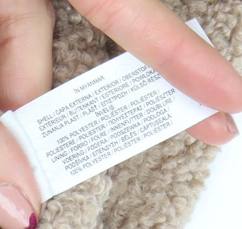 Stay warm and effortlessly stylish in this Primark Women’s Beige Hooded Fleece Puffer Jacket, designed to keep you cosy during chilly weather without compromising on comfort or shape. Crafted from soft, high-quality fleece and part of the environmentally conscious Primark Cares range, this jacket offers everyday practicality and warmth. The short, relaxed silhouette flatters the figure, while the full-zip fastening allows for easy layering over sweaters or tops. The hood provides extra protection against the cold, making it perfect for breezy autumn walks or casual winter outings. Inside, the quilted lining adds an extra layer of insulation, ensuring you stay toasty while maintaining lightweight comfort. The jacket also features a large quilted chest pocket with a zip fastening, offering both functionality and a stylish accent. Elasticated cuffs and hem help lock in heat, adding to its snug fit, while the neutral beige tone pairs effortlessly with jeans, joggers or leggings for a fashionable, laid-back look. Ideal for women who appreciate easy styling and dependable warmth, this piece transitions seamlessly from relaxed afternoons outdoors to cosy evenings in. As part of the brand’s sustainable fashion initiative, it’s made with care to support both comfort and environmental awareness. Whether you’re heading out for a casual day in town or need a practical throw-on for brisk winter mornings, this fleece puffer jacket delivers both charm and performance. Offering excellent pre-owned condition with minimal signs of wear, it’s an affordable choice for versatile, cold-weather layering. Add this Primark Hooded Fleece Jacket to your wardrobe for a go-to staple that combines comfort, warmth, and everyday style in one timeless piece.