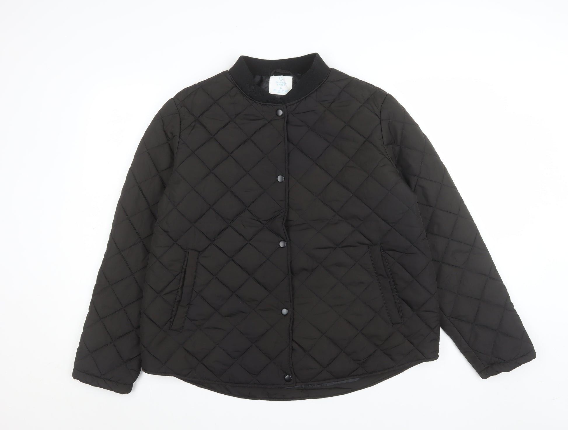 Stay effortlessly stylish and comfortable with this Primark women's quilted jacket in classic black. Designed to provide lightweight warmth, this jacket features a diamond quilted pattern that adds a touch of sophistication to casual ensembles. Crafted from 100% polyester, it offers a smooth, durable exterior with a soft inner lining, ensuring long-lasting comfort and protection during the cooler months. The polyester shell and lining make this jacket easy to maintain and machine washable for everyday convenience.This mid-length, padded jacket features a snap front closure and two side pockets, combining practicality with simple, timeless design. The regular fit makes it ideal for layering, while the ribbed neckline lends a modern touch, offering both style and function. Versatile enough to wear during autumn and winter, it’s perfect for outdoor walks, travel, or running errands in comfort and warmth.With its sleek look and subtle quilted detailing, this jacket pairs beautifully with jeans, leggings, or tailored trousers for a casual yet polished appearance. Light signs of wear may be present, including faint marks on the sleeves, but the overall condition remains very good, making it a fantastic addition to any wardrobe at a great value.Ideal for women seeking affordable style and reliable outerwear, this Primark quilted jacket ensures practicality without compromising on design. Secure this essential piece today for effortless seasonal layering and versatile use year after year.