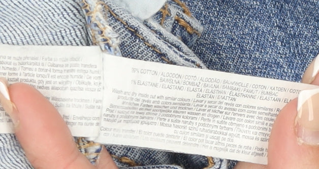 Add a touch of relaxed, classic style to your wardrobe with these Primark Denim Co Women’s Blue High Rise Mom Jeans. Designed in a flattering high-waisted cut, these jeans combine effortless comfort with casual everyday style. Made from 99% cotton with a hint of elastane for stretch, the denim provides a soft yet structured fit that maintains its shape while being comfortable to wear all day. The light blue wash offers a timeless look suitable for multiple outfit pairings, whether dressed up with heels or kept casual with trainers and a simple tee. Featuring a classic five-pocket design and secure button and zip closure, they deliver practicality with an easy-care finish. The traditional high-rise fit enhances the waistline and gives a modern silhouette ideal for women seeking comfort combined with fashion. These jeans are made under the Primark Cares initiative, reflecting responsible production. The light wash denim ensures these jeans stay versatile, wearable across seasons from spring through winter. Perfect for daily wear, casual outings, or weekend style, they bring a balanced blend of comfort and understated chic. Each pair of jeans shows minimal signs of wear, maintaining excellent condition for a pre-loved garment, ensuring continued use and longevity. Whether paired with oversized knitwear, a tucked blouse, or a cropped jacket, these jeans provide a go-to base for modern fashion styling. They embody practicality, relaxed elegance, and affordability — making them ideal for those who value sustainable and easily styled denim essentials. Grab these versatile high-waisted jeans to refresh your casual wardrobe and enjoy all-season comfort with an easy fit and refined look that flatters any figure. A wardrobe staple from Primark’s popular Denim Co range.