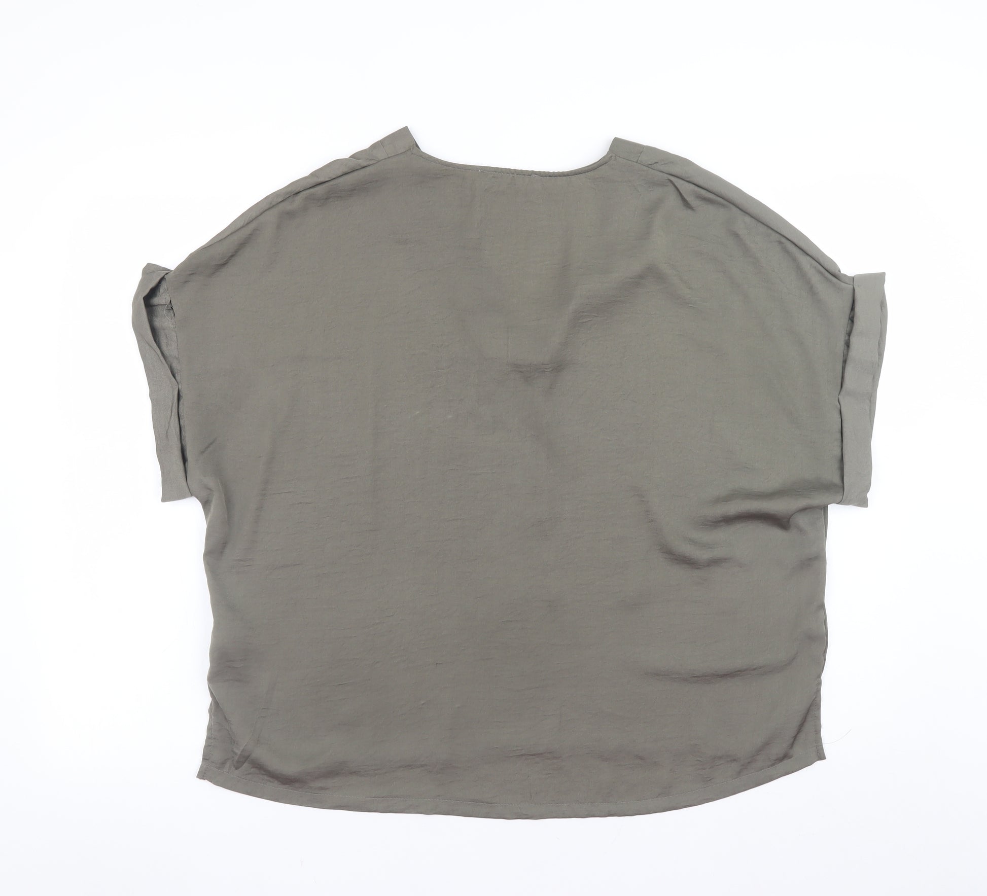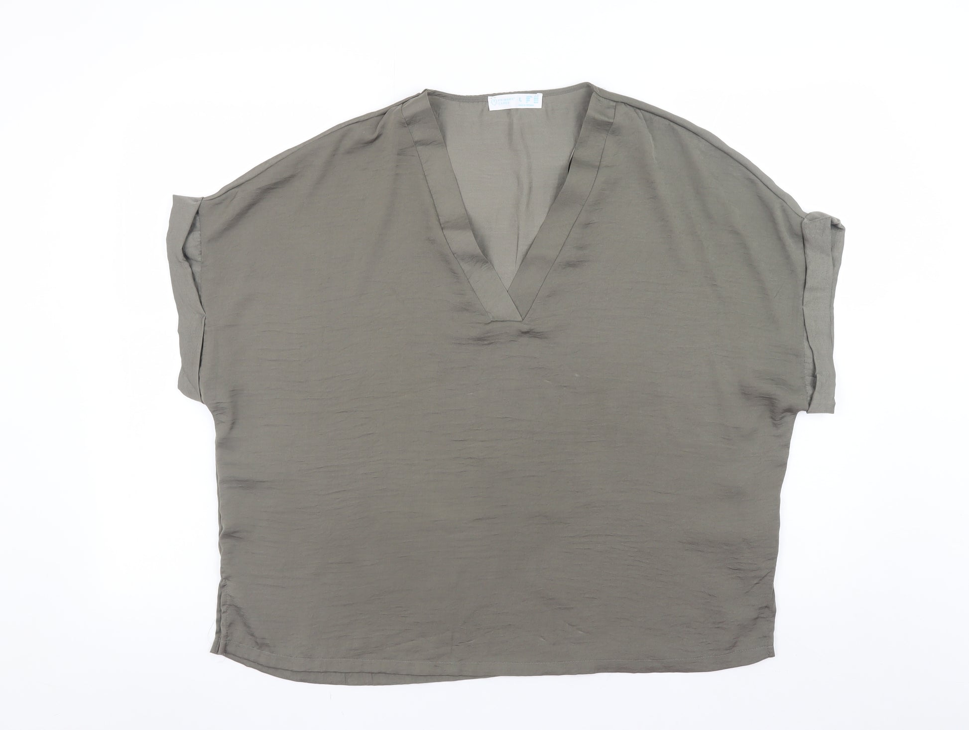 This Primark Women’s Brown Relaxed Fit V-Neck Blouse in size L (UK 14-16) is a versatile everyday essential designed for both comfort and effortless style. Crafted from 100% polyester, it delivers a smooth, lightweight woven texture that drapes beautifully against the body, offering breathable wear ideal for spring through autumn. The relaxed silhouette, dolman short sleeves, and pullover design make it easy to style for both casual and workwear occasions. The classic V-neckline adds a flattering touch, and the subtle sheen of the fabric provides an elegant yet understated finish that enhances its modern simplicity. Perfect for layering under light jackets or pairing with jeans, skirts, or tailored trousers, this blouse can be dressed up with accessories or worn simply for a relaxed look. Its machine-washable care makes it low-maintenance and perfect for everyday use. Whether you’re headed into the office, travelling, or out for a casual day, this Primark blouse combines practicality with a comfortable, chic appeal. In excellent pre-loved condition, showing only minimal signs of gentle use, the blouse is in great shape with soft fabric and neat seams. A must-have for your wardrobe that brings together functionality, value, and timeless design. Great for pairing with both neutral and bold tones, this piece complements your outfits easily and transitions seamlessly between smart and casual wear. A dependable item that enhances your collection with its simplicity and refined comfort.