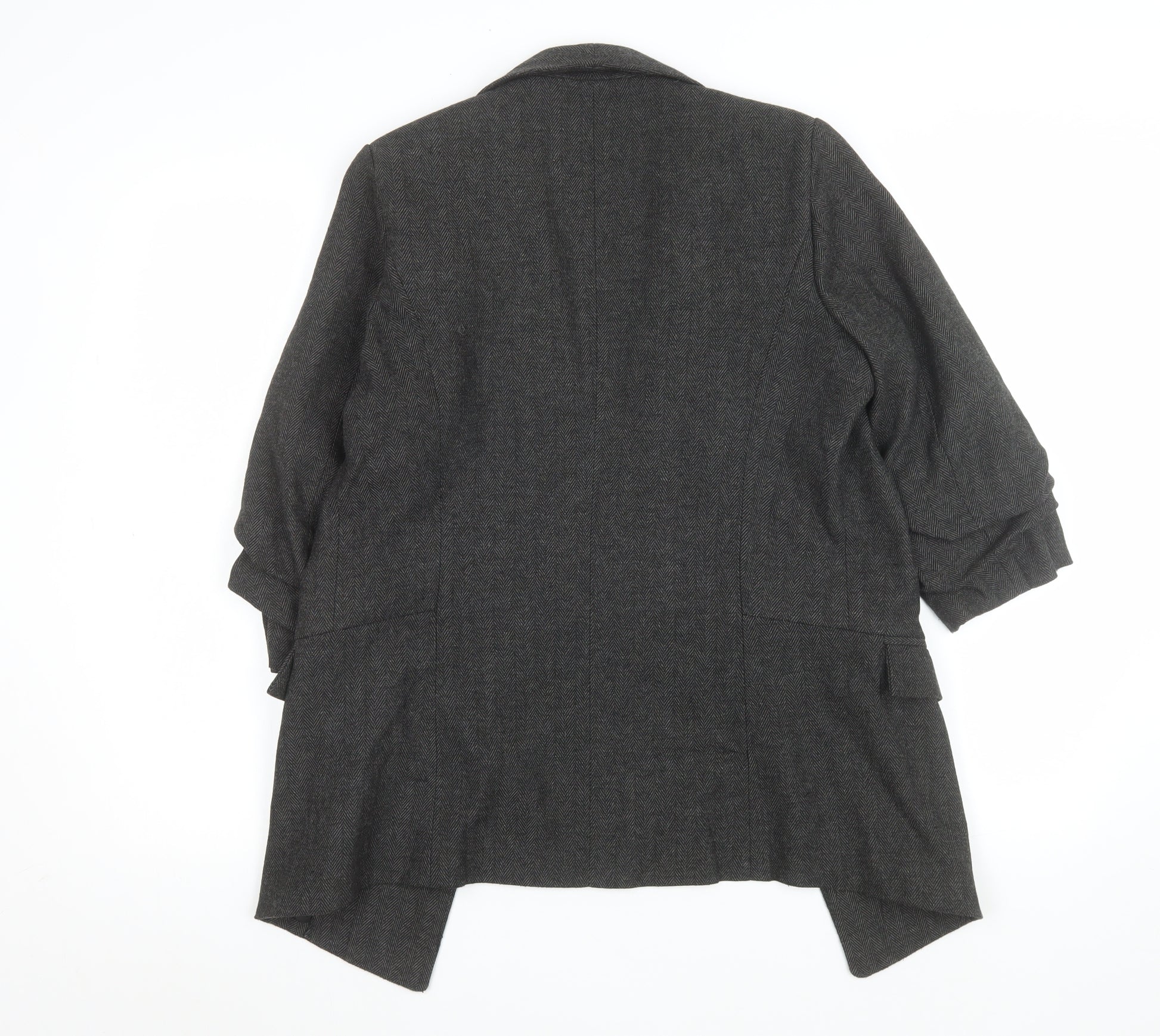 Women Grey Regular Fit Long Blazer UK 8 Herringbone Wool Blend