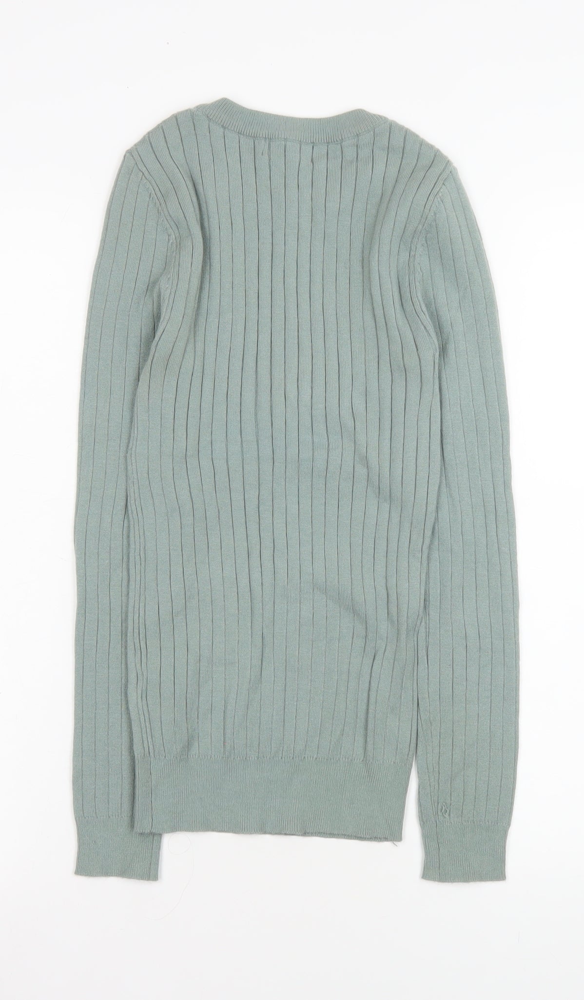 Women’s Green Ribbed Crew Neck Pullover Jumper XS