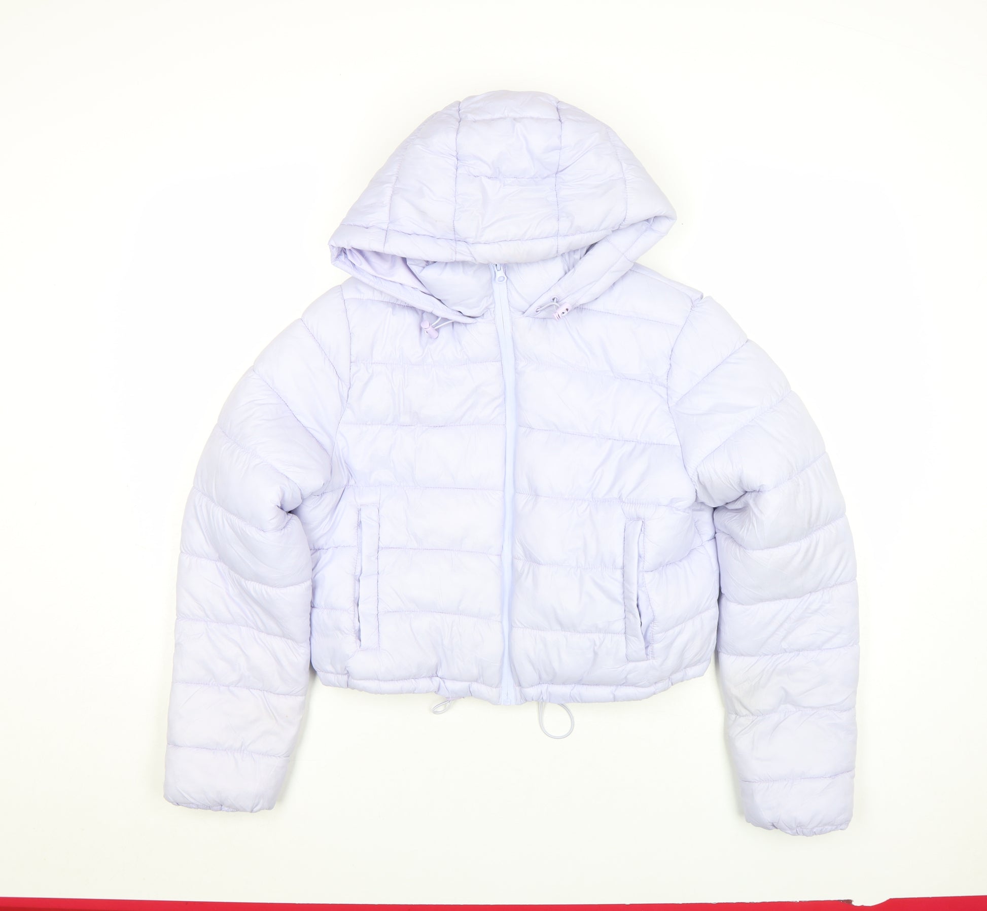 Add effortless style and comfort to your outerwear collection with this Primark Women’s Purple Hooded Puffer Jacket in size M. Designed for everyday wear, this cosy cropped puffer features a soft quilted finish that delivers a modern, casual look perfect for cold-weather layering. The pastel purple shade gives a refreshing, stylish twist to your winter wardrobe while maintaining a feminine, laid-back appeal. Crafted from durable polyester, the jacket’s outer shell and lining provide lasting quality and insulation, keeping you warm when the temperature drops. The synthetic fill ensures lightweight comfort without sacrificing warmth, making it ideal for brisk autumn evenings or frosty winter days. Functional design details such as the full zip fastening, hood, elasticated waist, and drawstring hem offer adjustable comfort and versatile styling options. Two convenient side pockets provide space for your essentials or a cosy place to warm your hands on cooler days. The cropped cut flatters the figure and adds a contemporary edge, making it suitable for styling with high-waisted jeans, joggers, or leggings. Perfect for casual outings, outdoor adventures, or weekend errands, this jacket combines everyday functionality with effortless fashion. Machine washable for easy care, this Primark puffer will quickly become your go-to outerwear choice when the temperature falls. In excellent pre-owned condition with minimal signs of wear, this jacket offers great style and value for money. Enhance your winter wardrobe with this versatile, comfortable, and fashionable lilac-toned puffer — the ideal companion for staying chic and cosy on chilly days.
