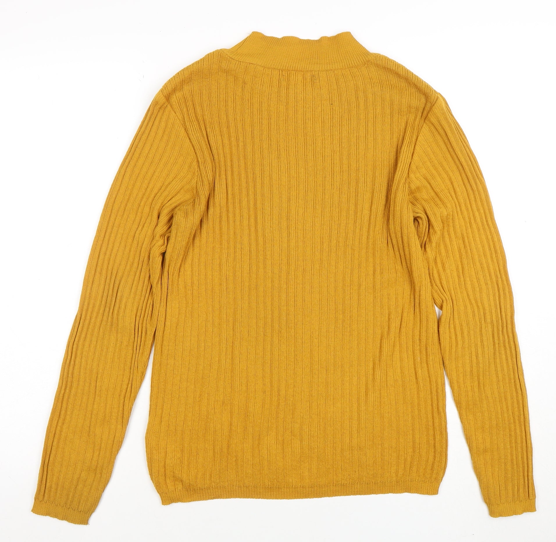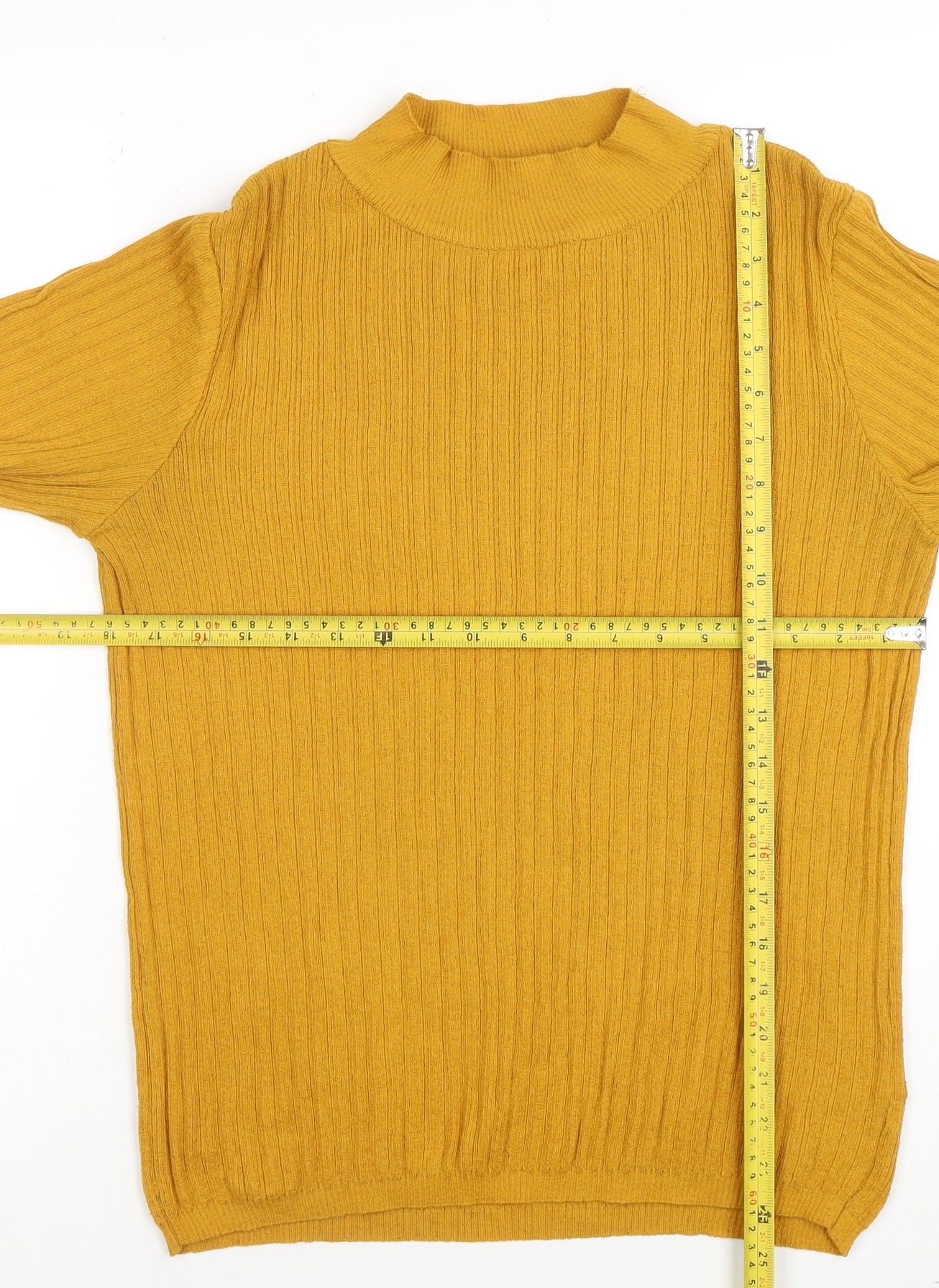 Women’s Yellow Mock Neck Rib Knit Pullover Jumper XL