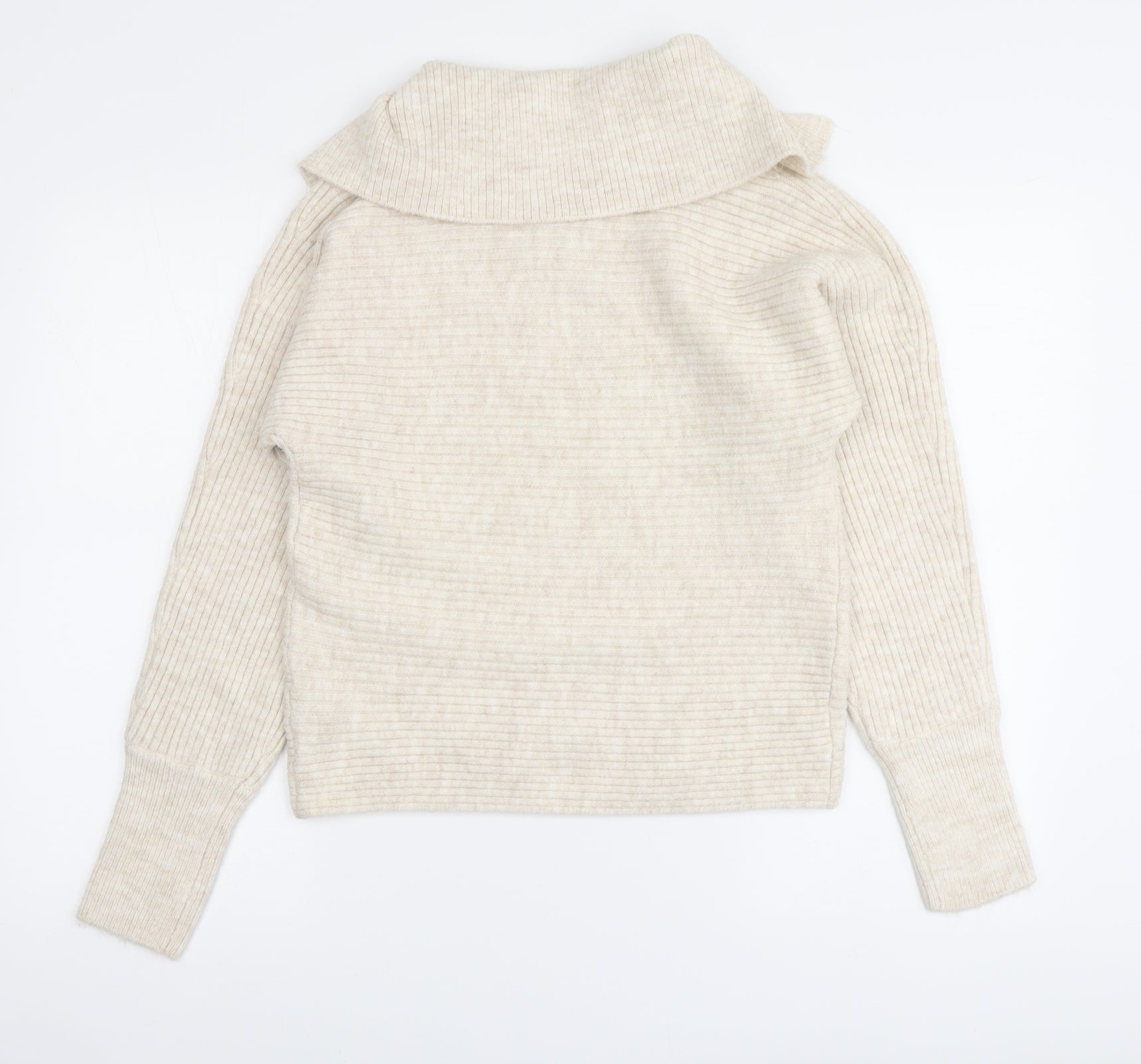 Womens Beige Collared Acrylic Pullover Jumper Size 2XS - Oversized Collar