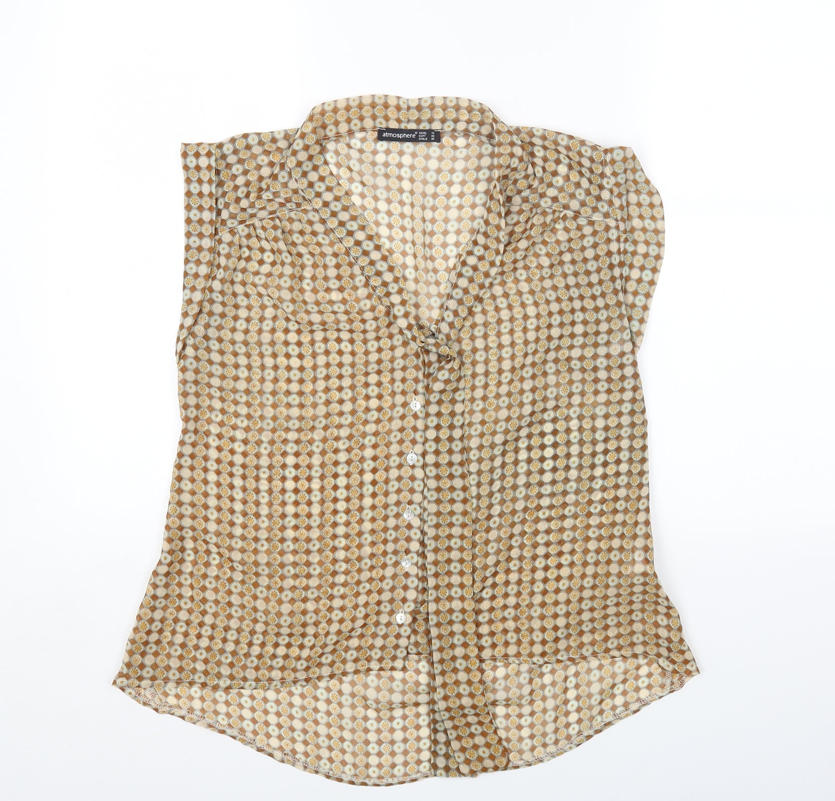 Womens Beige Geometric Polyester Basic Blouse Size 10 Round Neck