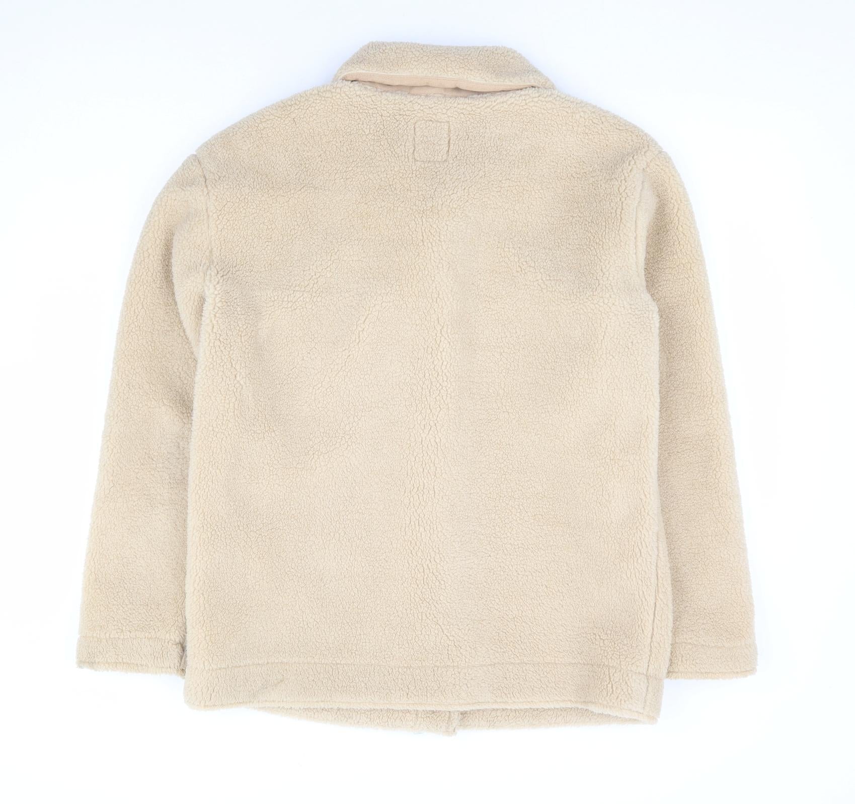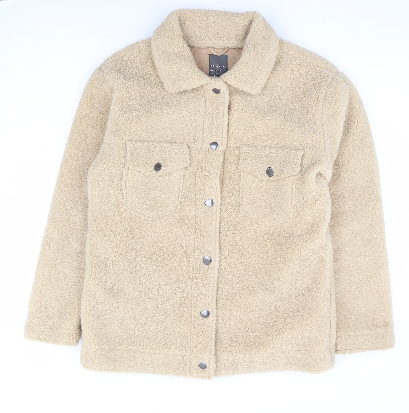 Womens Beige Jacket Size 12 Button - Teddy Shacket