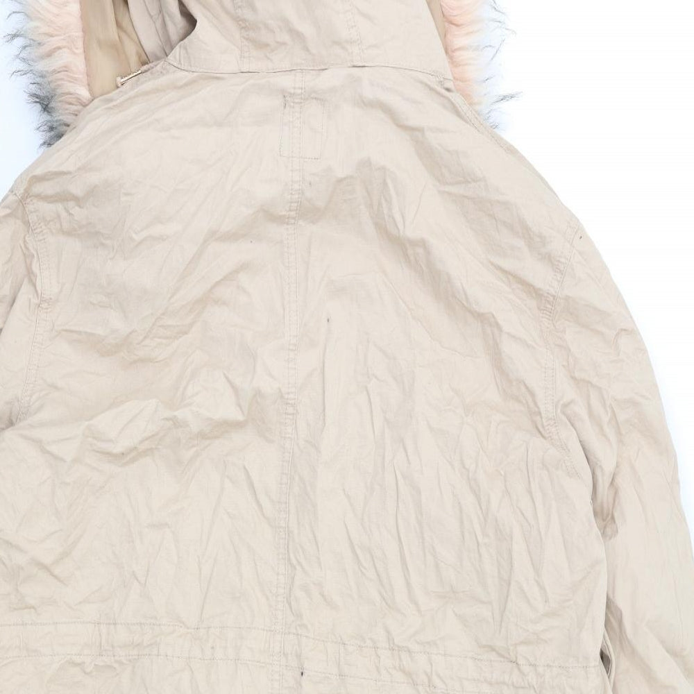 New Look Women’s Beige Hooded Duffle Coat Faux Fur Trim UK 18