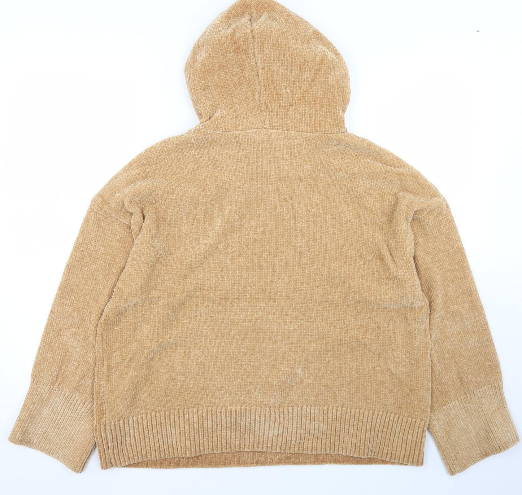 Womens Beige Polyester Pullover Hoodie Size 14 - Velour